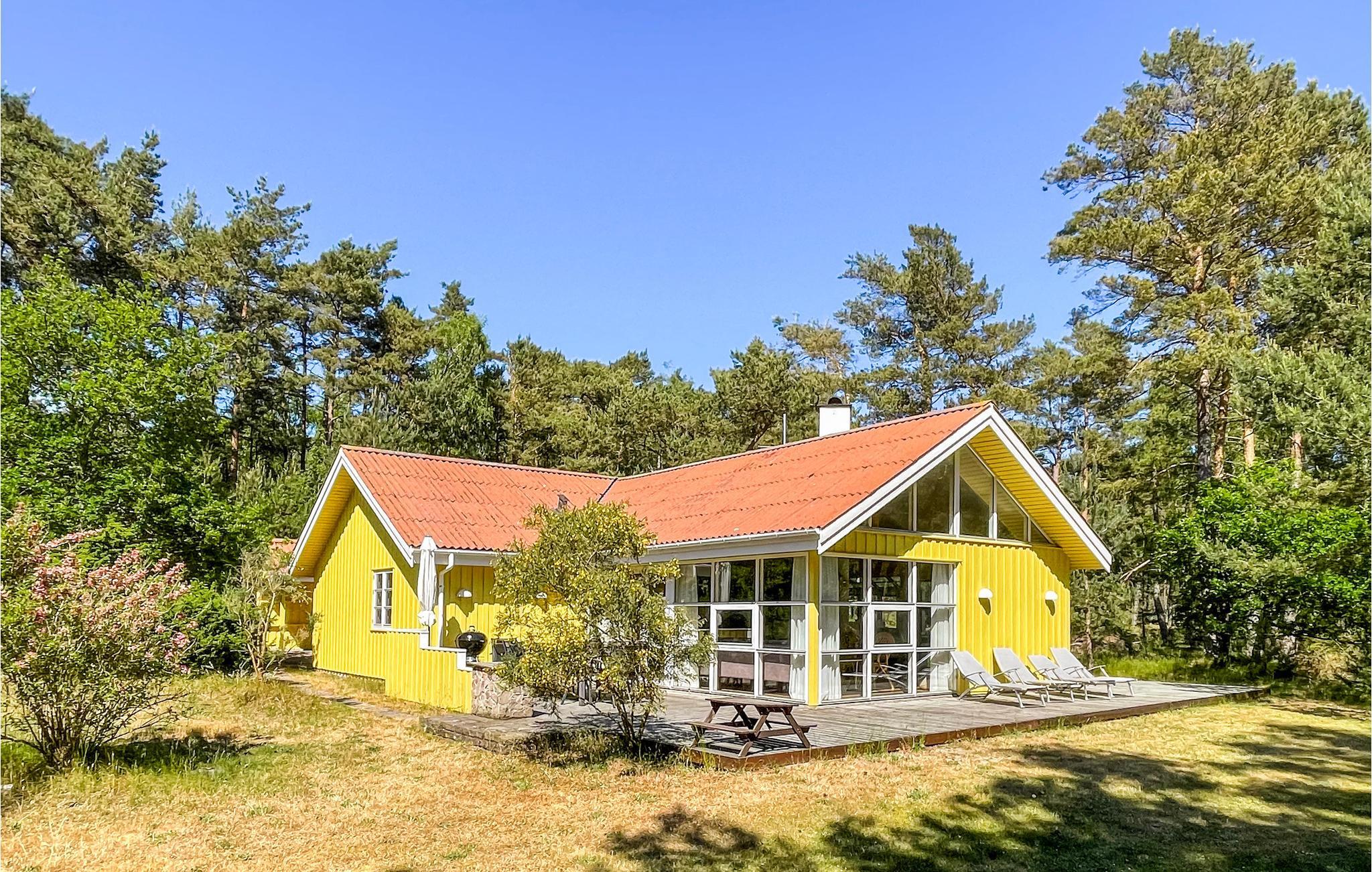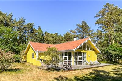 5,0Stort og indbydende feriehus i træ, som ligger på en stor, ugenert naturgrund med blot 100 meter til en børnevenlig sandstrand. Velkommen til dette fine feriehus i en indbydende gul farve. Også indvendigt charmerer huset takket være smagfuld indretning,