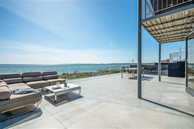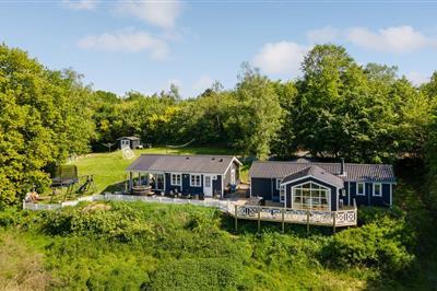3,0Smart og moderne sommerhus få skridt fra havet. Dette lækre feriehus er noget helt særligt, og så er der oven i købet en betagende havudsigt. I vinterhalvåret kommer I sikkert til at tilbringe en god del af tiden i den flotte stue med ild i biopejsen og et