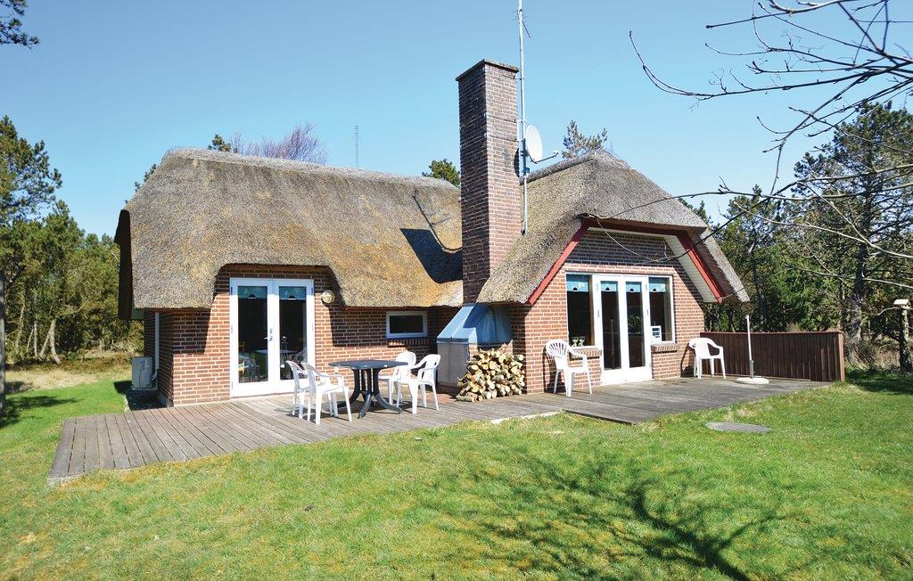 4,0Dette stråtækte feriehus ligger på en rolig sidevej ikke langt fra klitter og hav. Indvendigt er huset meget charmerende med træbeklædning på lofter og vægge. Køkkenet ligger i midten af opholds- og spisestuen, så under madlavningen kan I følge med i, hvad