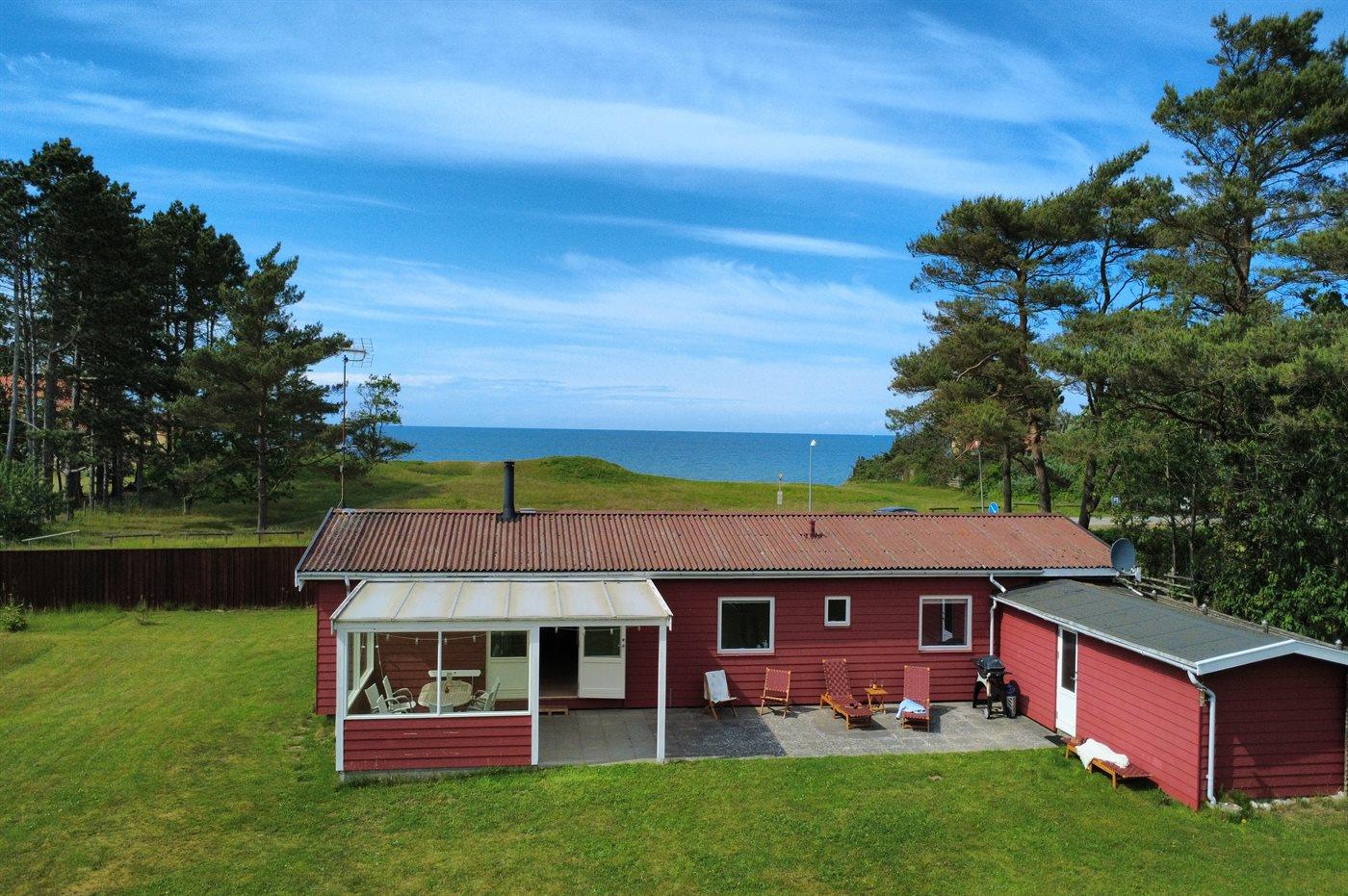 Dette sommerhus beliggende i 1. række til havet og med kun få meter til vandkanten byder på den mest fantastiske udsigt. Nyd kigget over Kattegat fra det meste af huset, og når I slapper af på terrassen. Herfra er det muligt at følge vejrets skiften,