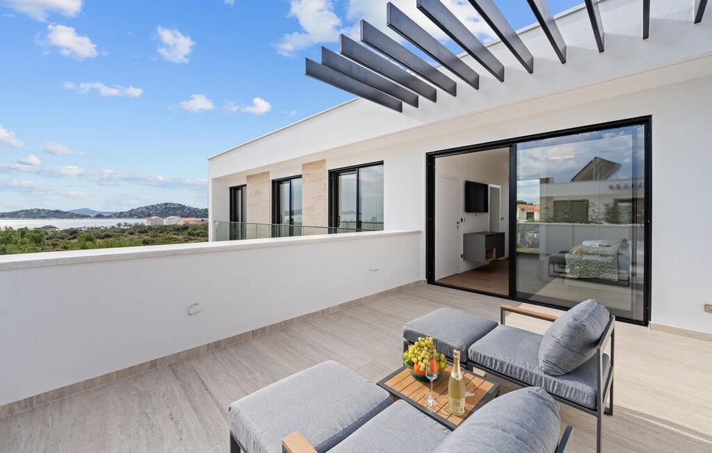 Luksus, elegance og design byder dig velkommen i dette smukke feriehus i Vodice-Srima. Nyd en luksuriøs ferie med din familie eller vennepar i dette fantastiske feriehus, der vil inspirere dig. Møbler af høj kvalitet, udvalgt indretning og en luksuriøs