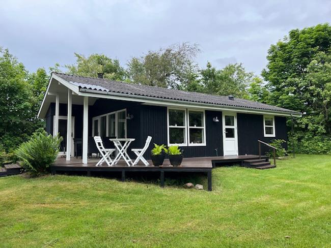 Hyggeligt træhus ved Slettestrand med naturudsigt