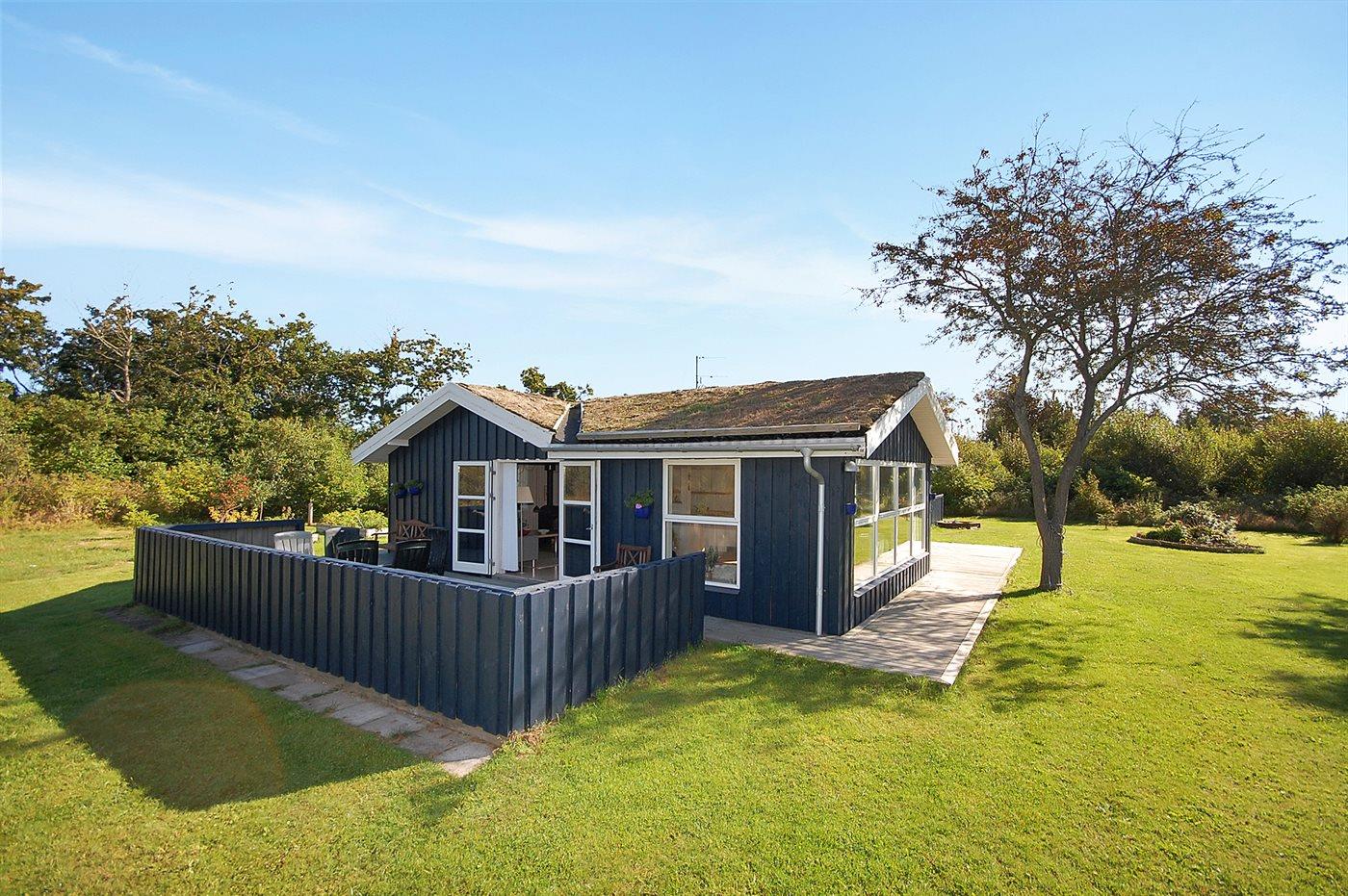 5,0For enden af lukket vej i naturskønne og uforstyrret omgivelser ligger dette hyggelige sommerhus med udgang til skønne solterrasser. Huset er indrettet med loft til kip og vidunderligt lysindfald overalt i huset fra de enorme panoramavinduer. Indretning