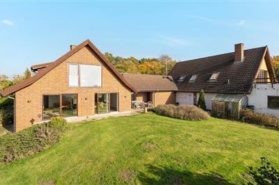 4,0Rummelig villa med skøn beliggenhed og en flot udsigt til naturen. Uden for Faaborg, tæt på skoven, ligger denne skønne villa højt oppe på en bakke. Grunden tæller to sammenhængende huse og er derfor velegnet til større familier. Indretningen er moderne og