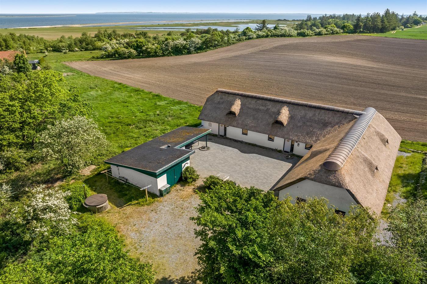4,3Hyggeligt stråtækt sommerhus på Fur. Ferieboligen er indrettet i en tidligere landejendom med lyse rum og moderne faciliteter. Her er alle muligheder for en sjov og afslappende ferie med aktivitetsrum, vildmarksbad, shelter, en have til leg og spil og en