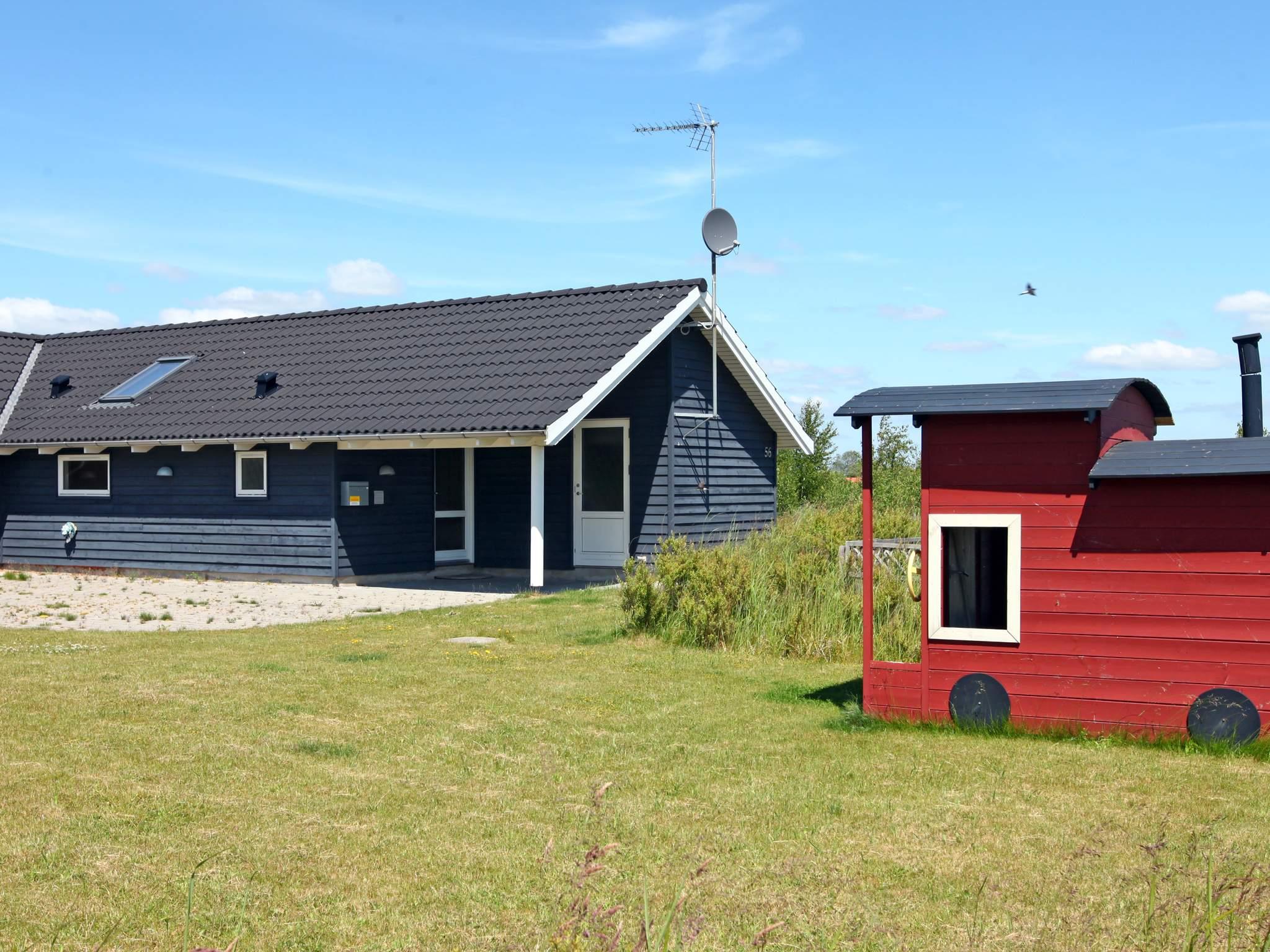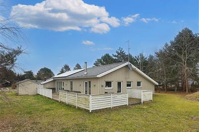 1,0Skanlux-sommerhus beliggende på stor hjørnegrund. Som nabo er der en legeplads lige bag ved huset, og der er en fodboldbane som genbo skråt bag ved huset, her skal I dog krydse en vej for at komme på boldbanen (kun lidt trafik). På legepladsen er der gynger,