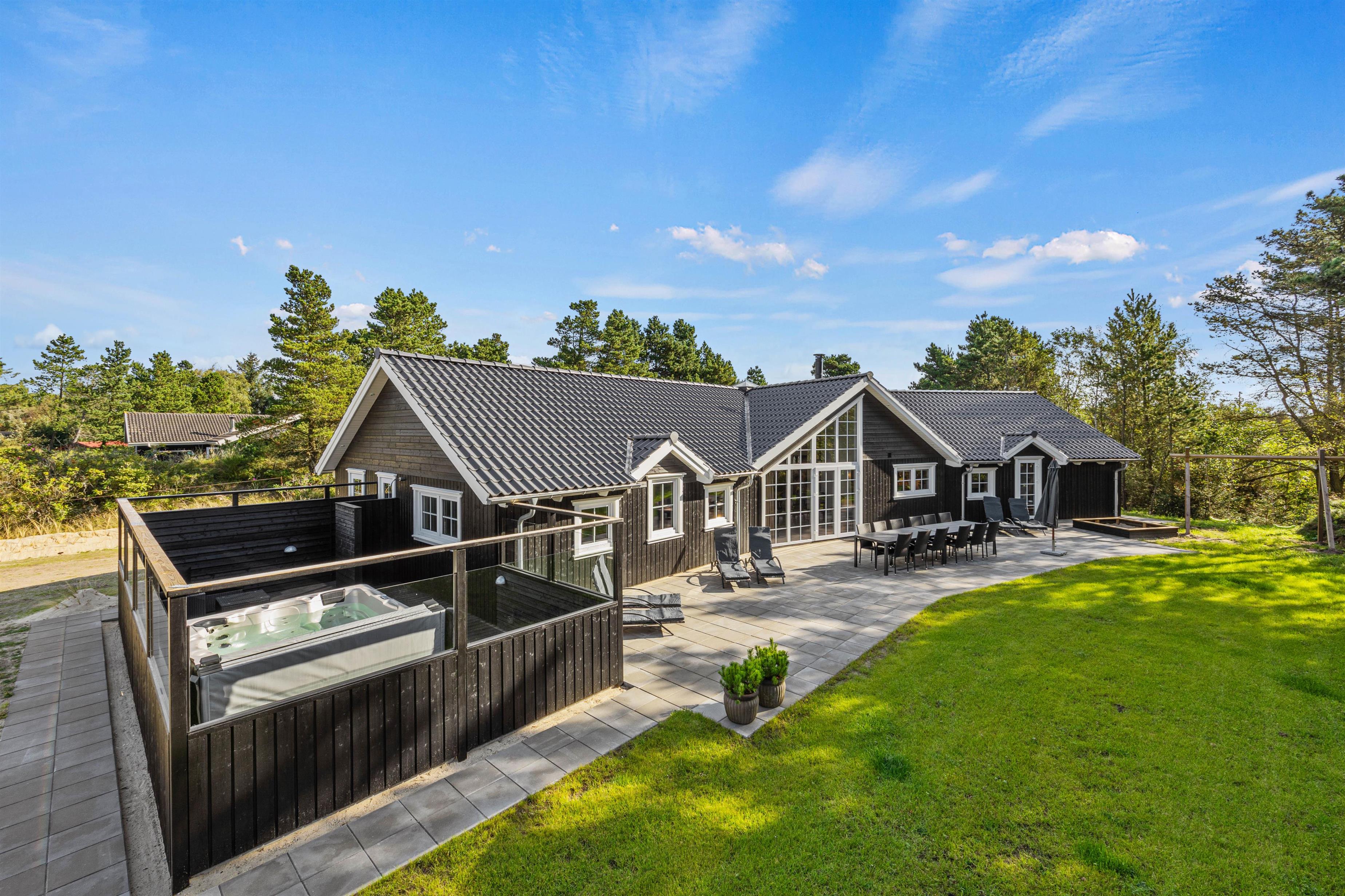 5,0I Blåvands naturskønne ferieområde ligger dette attraktive feriehus ved Bjergbovej 9, der i den grad tikker alle bokse. Det topmoderne spahus råder ikke kun over luksuriøse faciliteter som indespa til 7 personer, udespa, sauna og dampbad - der er også sørget