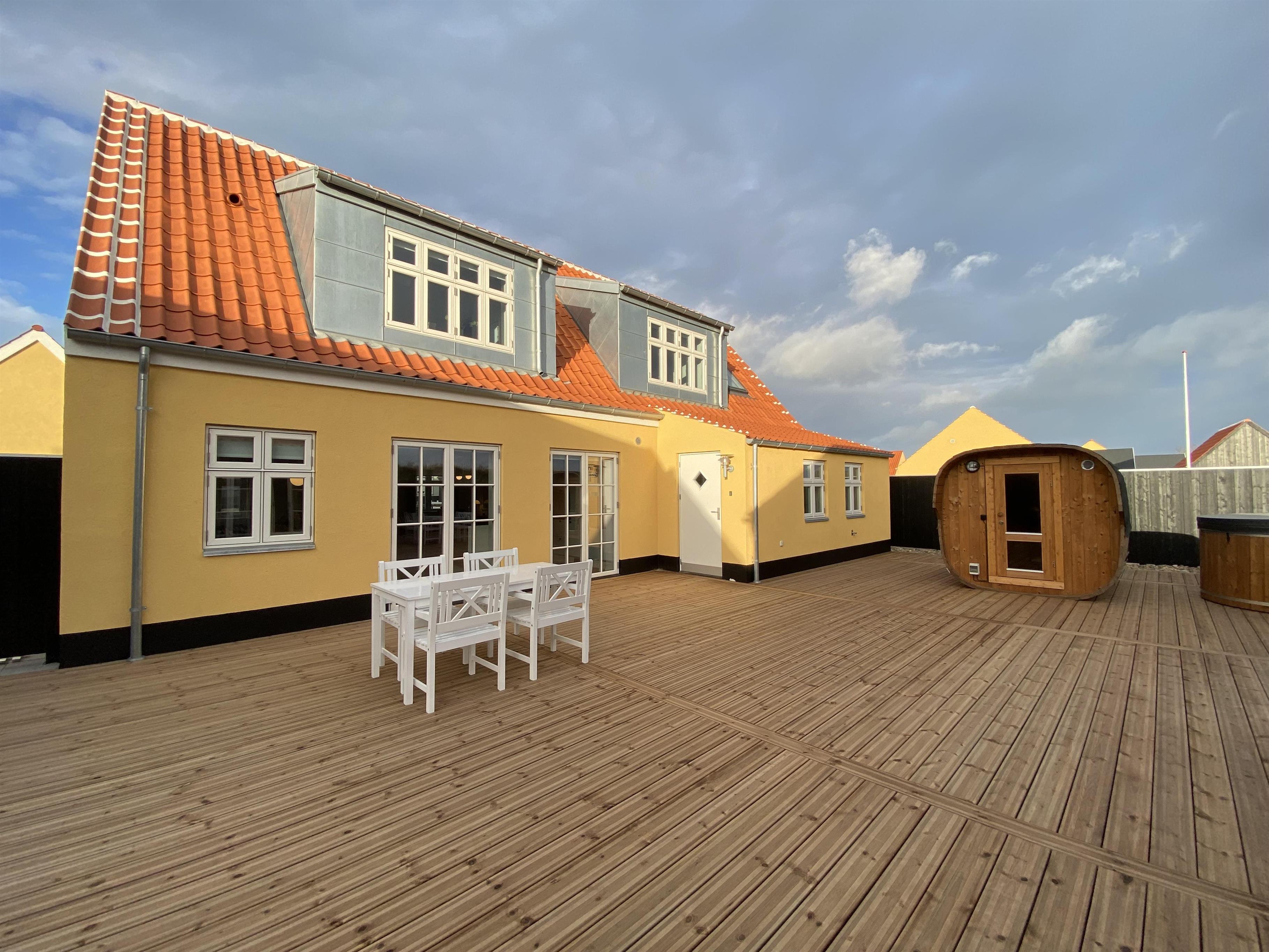 Velkommen til luksuriøst feriehus, der indkapsler den ultimative oplevelse af komfort og stil. Superlækre 187 m2 fordelt på to etager og på to bygninger. Ferieboligen råder over i alt seks smukt indrettede soveværelser og to lækre badeværelser, så selvom I er