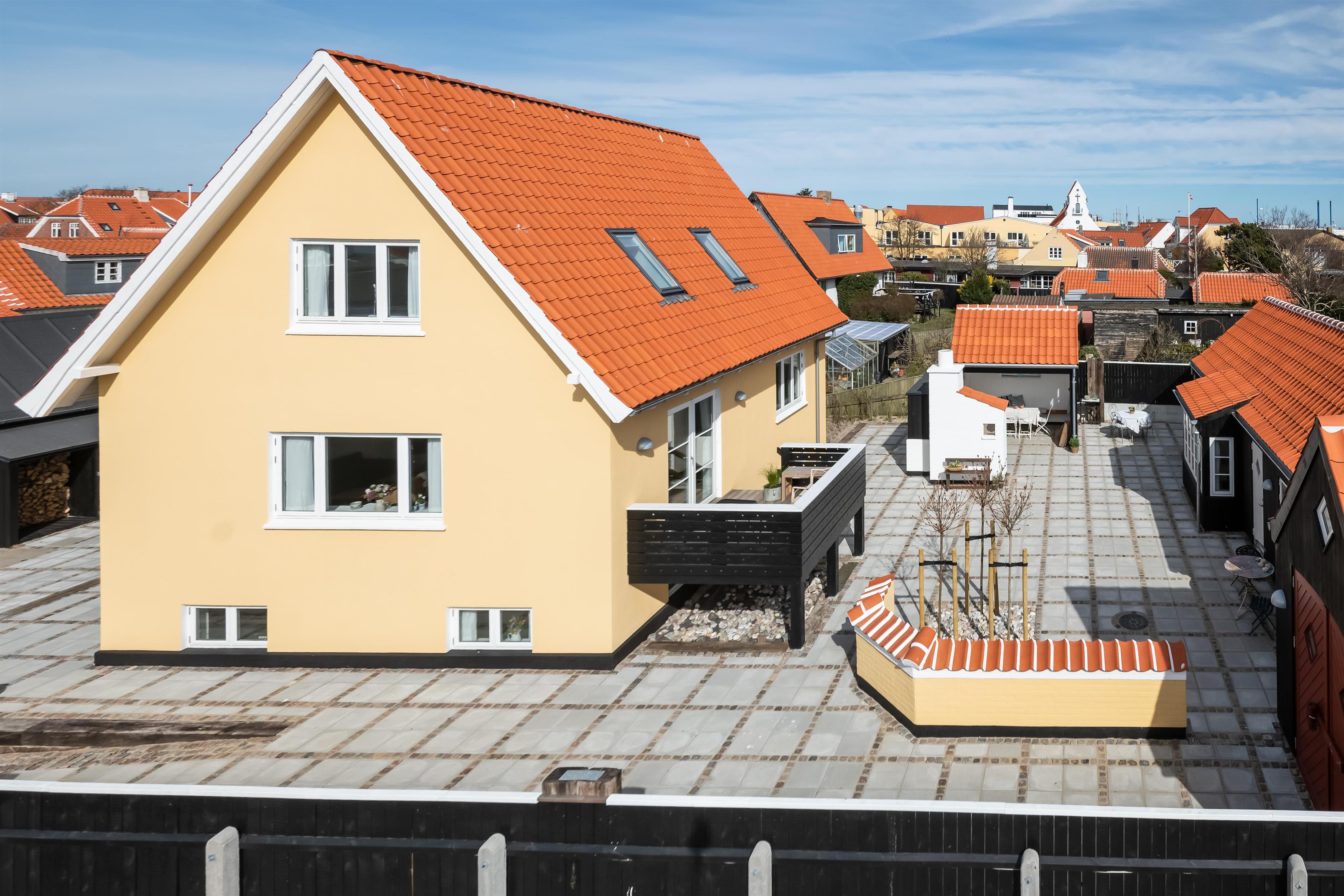 Et centralt og velbeliggende, stort og klassisk gult skagenshus i 2-plan - tæt på centrum med de mange hyggelige restauranter, havnen og den dejlige badestrand. Der er gode parkeringsmuligheder. Husets størrelse og indretning gør det velegnet til såvel 1