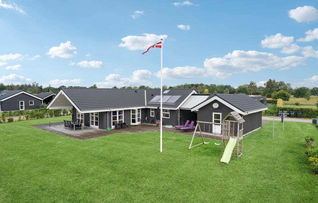 Nyd en pause i dette feriehus, der byder på utallige muligheder for afslapning. Træd ind i den store opholdsstue og sæt jer godt til rette i den store sofagruppe. Slap af foran brændeovnen og nyd udsigten til haven gennem de store panoramavinduer. Brug det