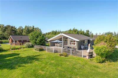 5,0Dette dejlige og lyst indrettede sommerhus ligger på en indhegnet grund med plads til udendørsaktiviteter. Til huset hører en stor og til dels overdækket terrasse med havemøbler. Indretning Sommerhuset egner sig til 4 personer. Ferieboligen er på 61 m² og