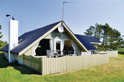 3,5Dette dejlige og smagfuldt indrettede sommerhus ligger på en kuperet grund midt imellem Vesterhavet og Ringkøbing Fjord - i et naturskønt område med gode muligheder for cykel- og vandreture. På den store lukkede terrasse, hvor både små børn og dyr kan færdes