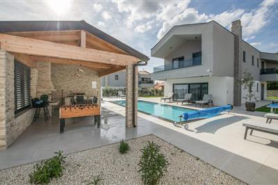 Der er lagt op til en sand drømmeferie i dette familievenlige hus med pool. Tæt på havet ligger dette veludstyrede feriehus, som lægger op til et afslappende ophold. Huset emmer af kvalitet og høj komfort, og der er plads til en større familie eller flere