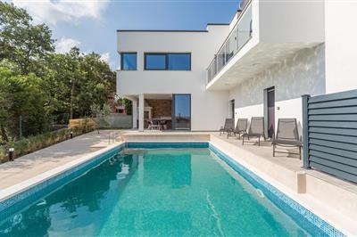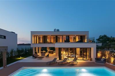 Beliggende i et naturligt miljø med en karakteristisk istrisk charme, vil denne moderne villa tilfredsstille selv de mest krævende ønsker hos elskere af moderne arkitektur. Fire store soveværelser med masser af sollys er udstyret med dobbeltsenge. Mens du