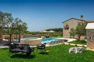5,0Den fantastiske Villa Stephanie ligger i Rovinjsko Selo, en mindre landsby lige uden for den mest romantiske kystby i Kroatien - Rovinj. Villaen ligger i udkanten af landsbyen og er omgivet af natur på tre sider. Leder du efter en mere rolig beliggenhed, men