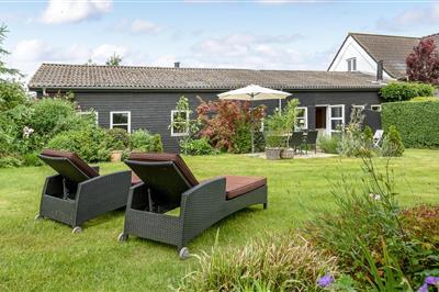 4,5Moderne og lyst sommerhus ved Kegnæs med plads til 5 personer. Fald helt til ro, og glem for en stund hverdagens stress og jag, når blikket får lov til at vandre udover markerne på den ene side af dette sommerhus. Her er flere gode terrasser, så solen kan