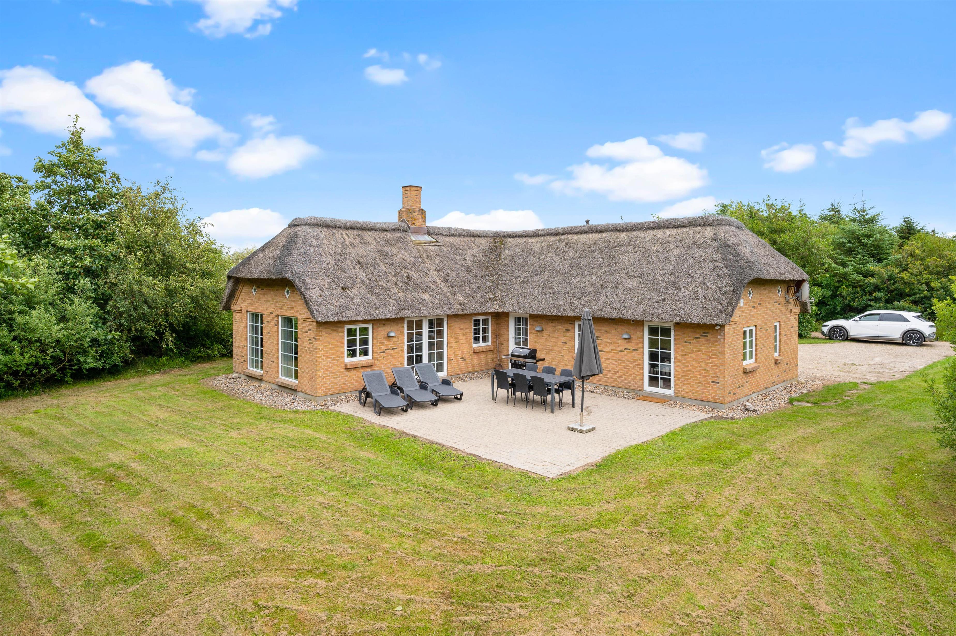 4,5På Løvsangervej 13 ligger dette fine stråtækte stenhus på en stor naturgrund. Ferieboligen er rummelig og lyst indrettet og har en størrelse på 108 m2, så der er god plads til 6 personer. Her er også både sauna og spa til at give en fornemmelse af wellness på
