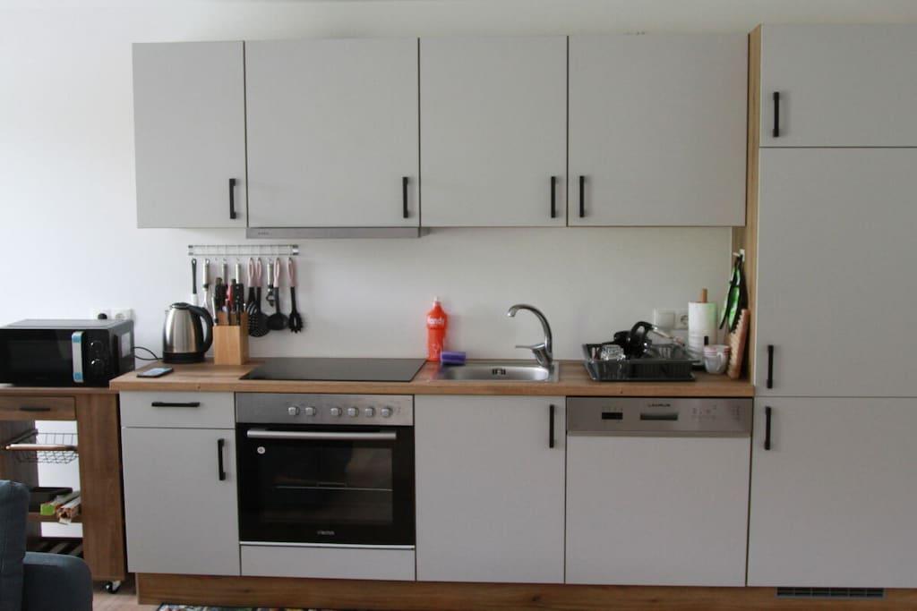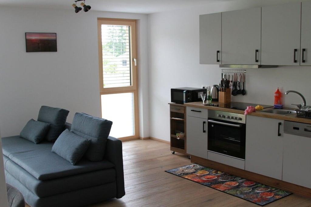 Indkvarteringen består af et køkken-stue, et soveværelse, et badeværelse og en lille balkon. Soveværelset er møbleret med en dobbeltseng og en barneseng efter anmodning. Sofaen kan bruges som sovesofa. Lejligheden har også kaffemaskine, mikrobølgeovn, vaskemaskine og hårtørrer.
