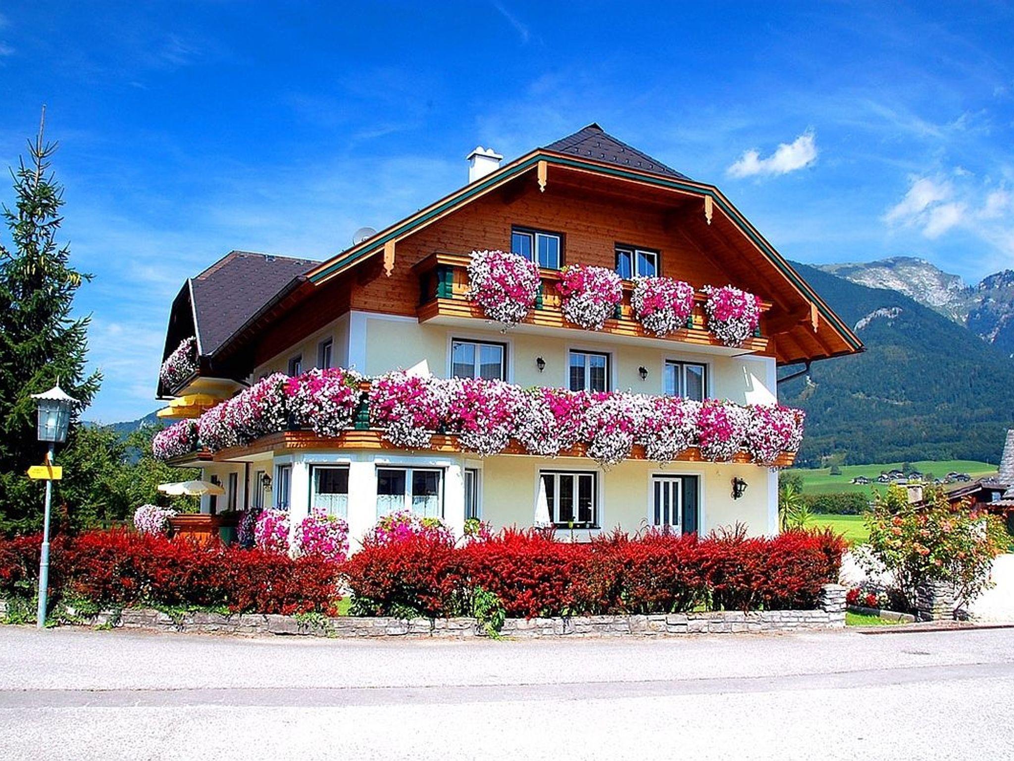 eingebettet in unsere traumhafte Berglandschaft und noch dazu mit direktem Blick zum 300 m entfernten Wolfgangsee.