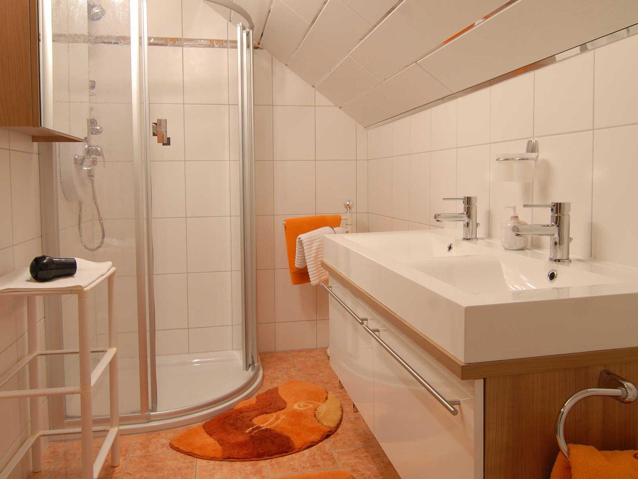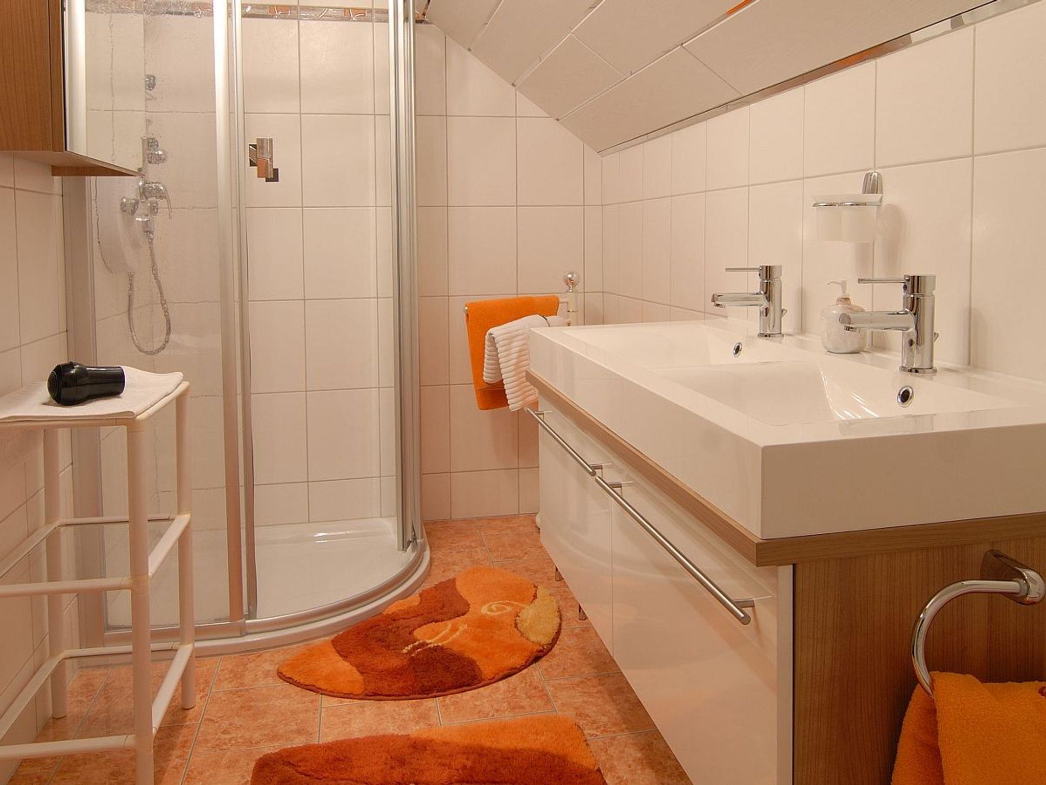 Ferienwohnung ca. 65m² mit Schlafzimmer, Bad mit Dusche, Badewanne und Doppelwaschbecken, Haarfön, WC, Vorraum,