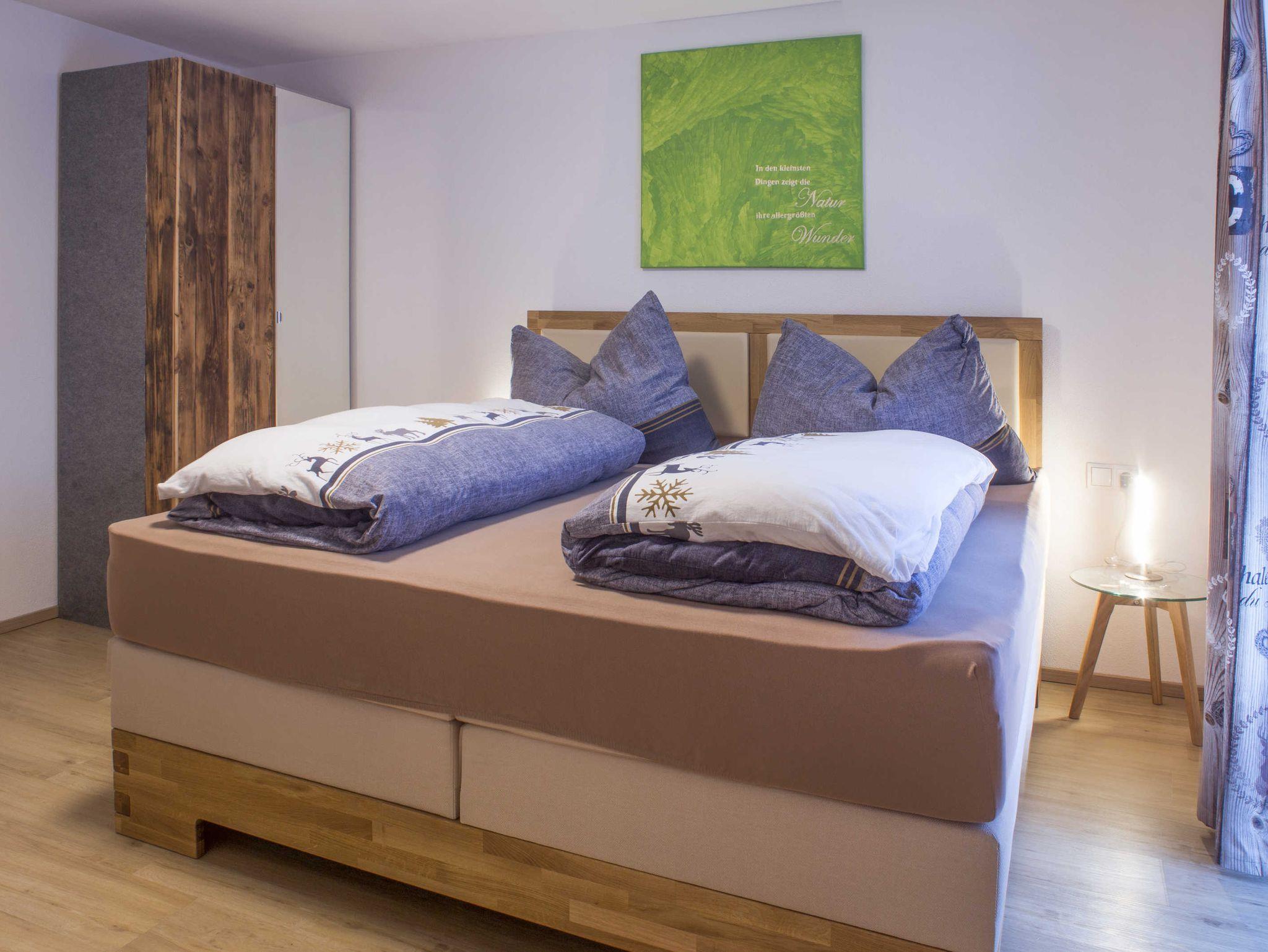 Schlafzimmer mit Boxspringbett und ausziehbarem bequemen Zustellbett