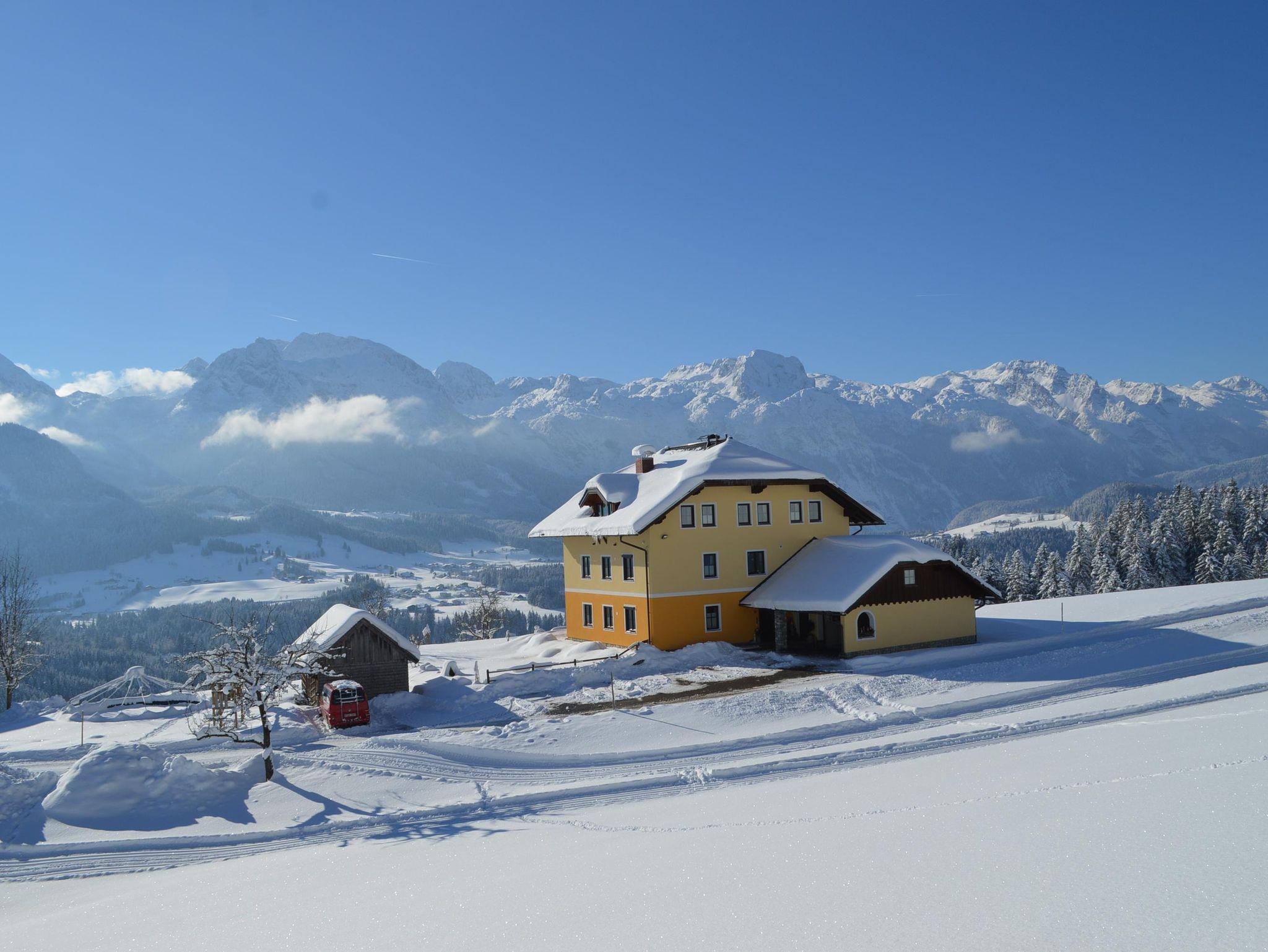 Lassen Sie den Alltag hinter sich und genießen Sie herzliche Gastfreundschaft in familiärer Atmosphäre. Blühende Natur, verzauberte Winterlandschaften - greifbar nahe die Berge. Ein Ferienjuwel für Kinder, Genussmenschen oder Aktivurlauber. Freuen Sie sich auf unsere liebevoll ausgestatteten Ferienwohnungen sowie einen idyllischen Garten zum Relaxen - mit Schwimmbad u. Spielplatz. Lage: Mitten in saftig, grünen Wiesen - eingebettet in das einzigartige Bergpanorama des Tennengebirge u. Dachstein