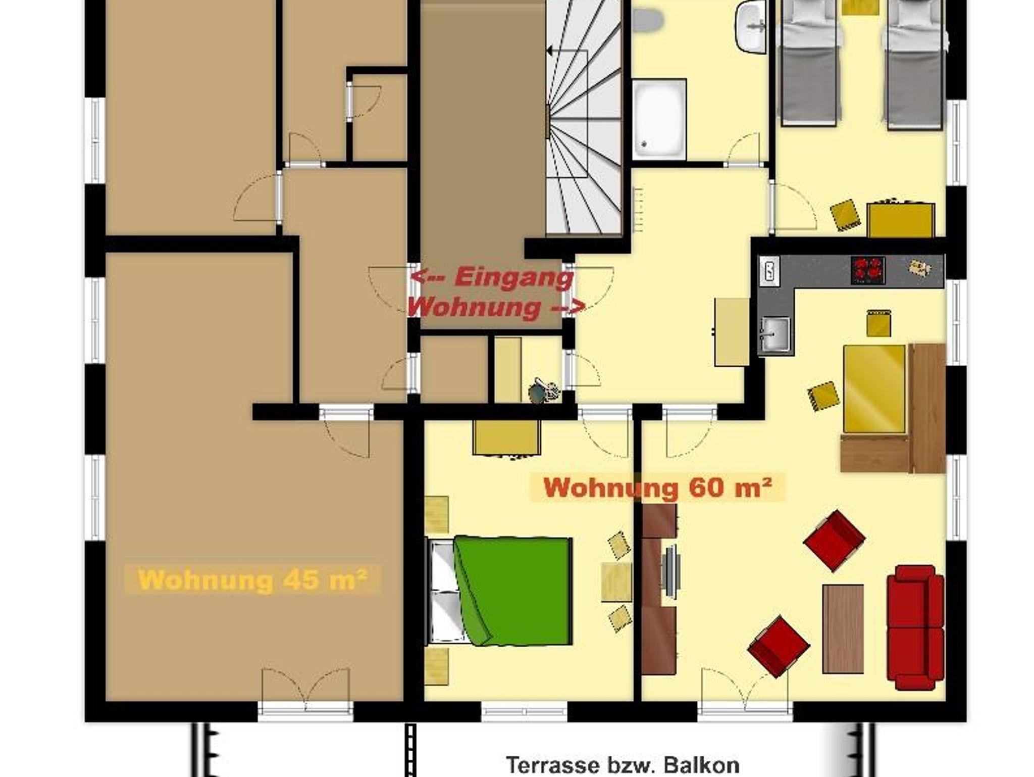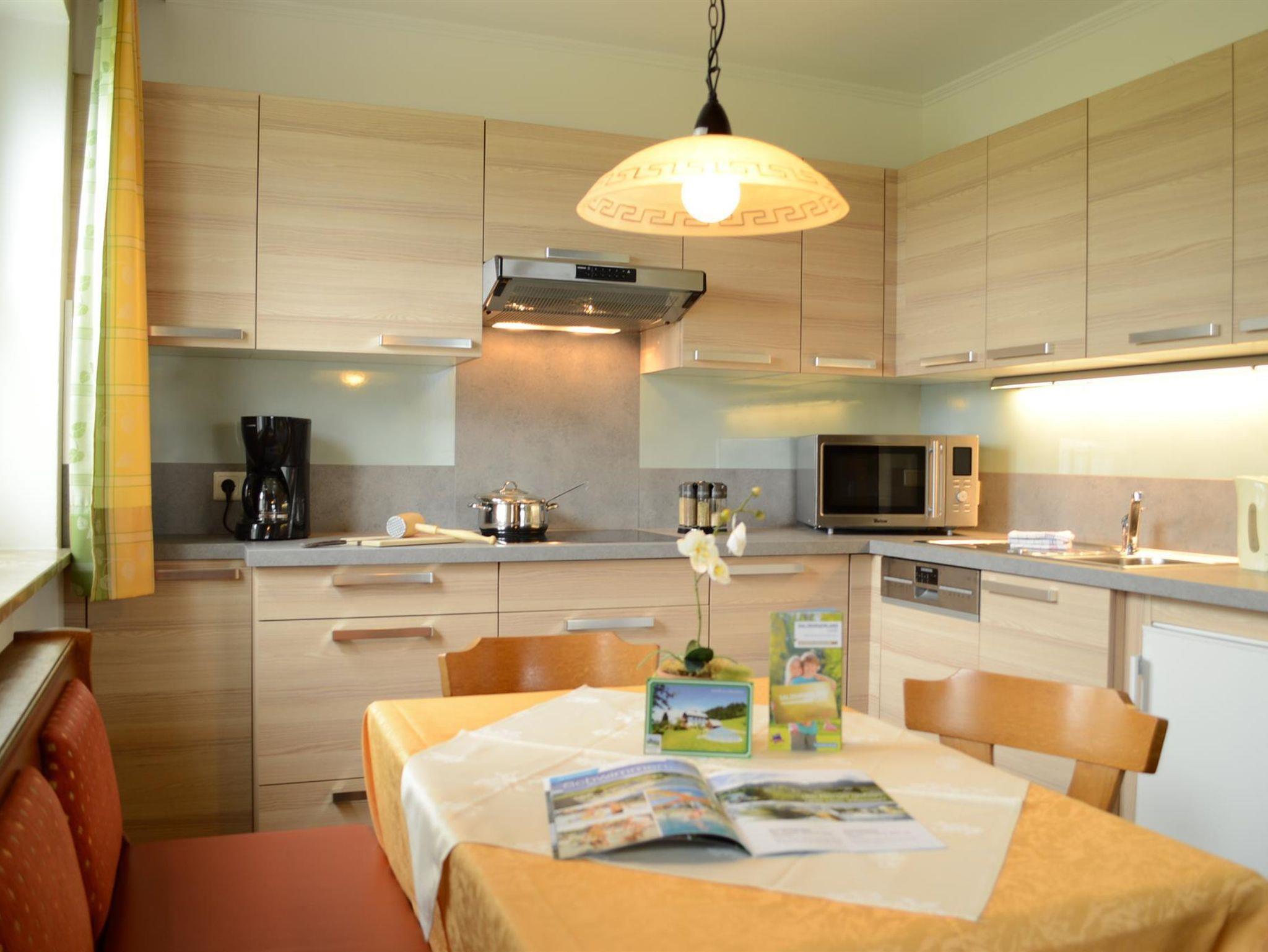 Die Ferienwohnungen sind jeweils 45 m² groß und bestehen aus einem großen Wohn(schlaf)raum mit LCD-TV, Ausziehsofa, komplett eingerichteter Wohnküche mit gemütlicher Eckbank, einem Schlafzimmer, Bad mit WC, sowie einem Vorraum mit Abstellraum - traumhafte Bergblicke vom Balkon.
