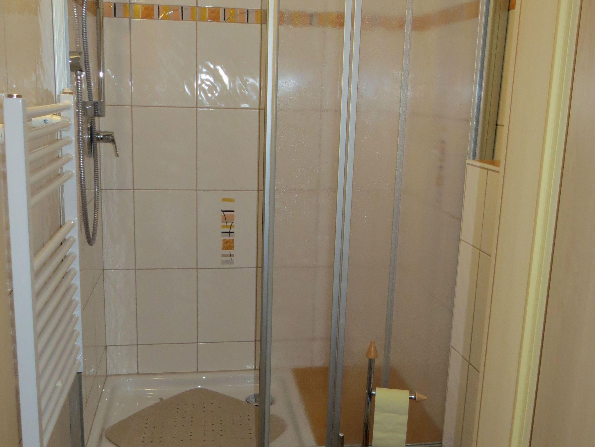 3 Schlafzimmer, Wohnküche, 2 x Dusche/WC, Balkon, SAT-TV, großer Vorraum. Ein Doppelzimmer, ein Dreibettzimmer und ein Zimmer mit Stockbett und Einzelbett. Die Küche ist mit
