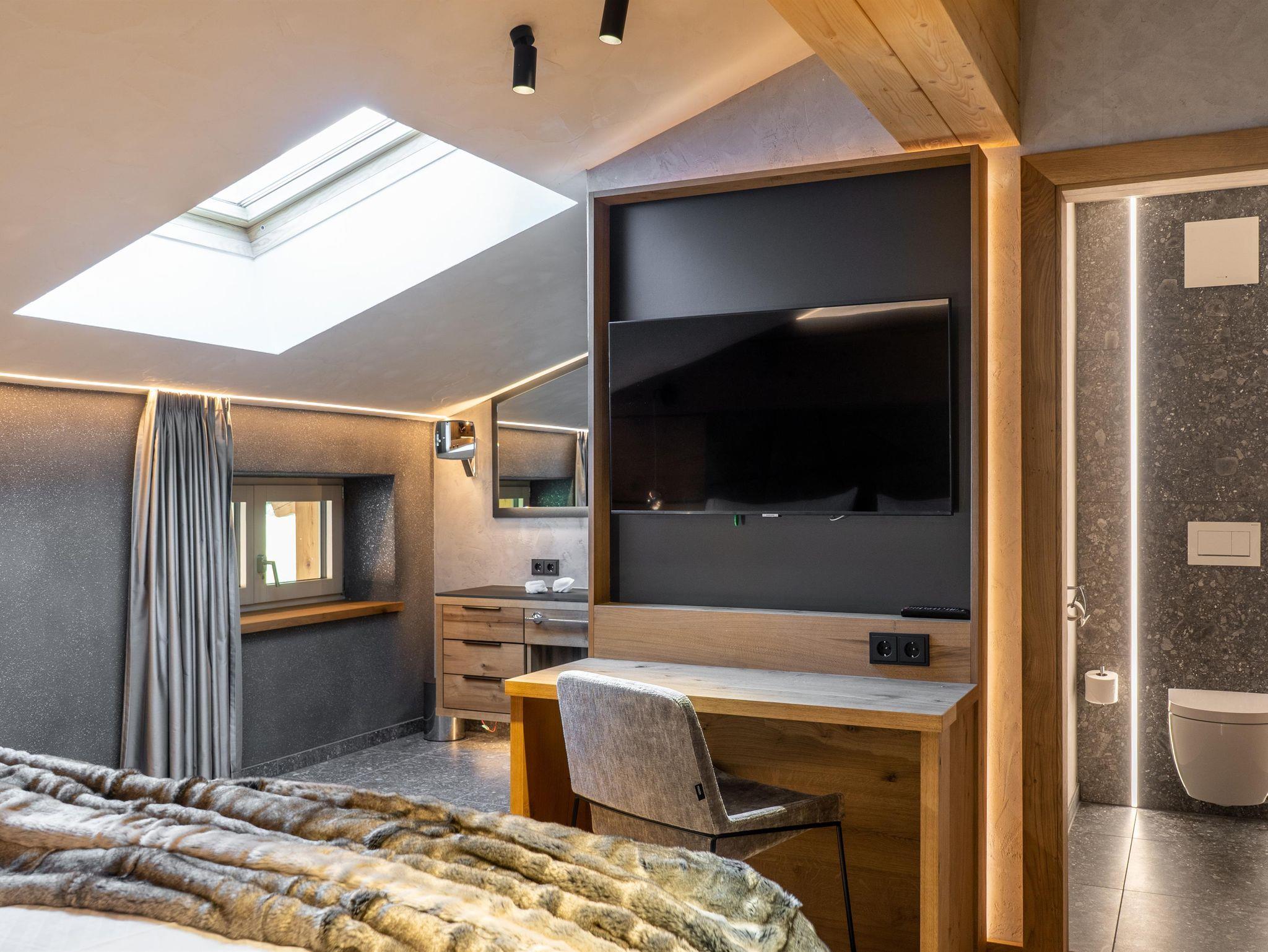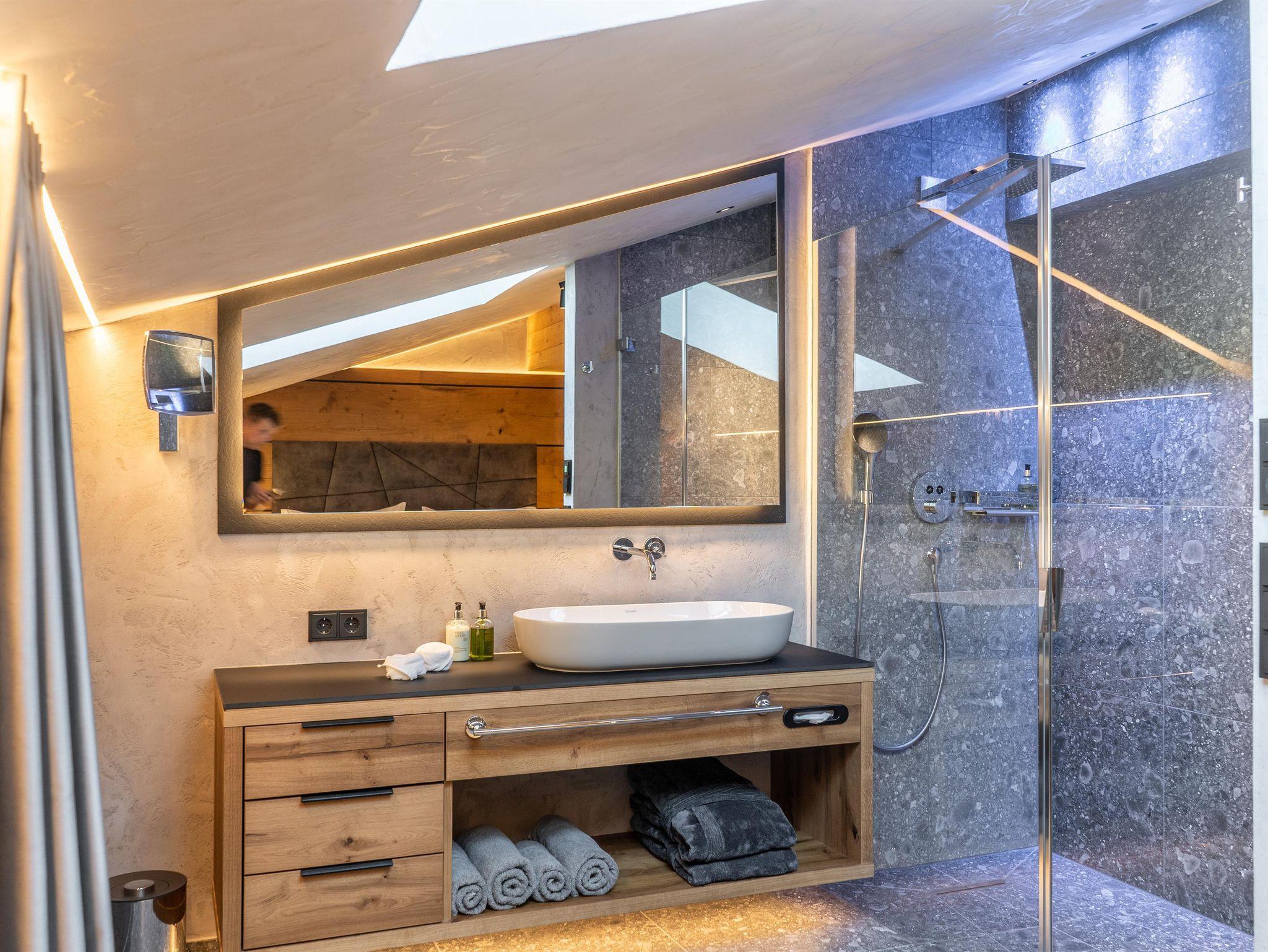 2 große Schlafzimmer mit je 2x Kingsize Boxspring-Betten sowie Flat-TV für jedes Schlafzimmer, Private Spa-Bereich mit 2 Badezimmern. 1 Badezimmer mit Du/Waschbecken, extra WC, zweites Badezimmer mit eigener Finischen Sauna, freistehender Badewanne, Dusche und WC, Moderne Wohnküche mit perfekter Ausstattung: Geschirr, Espressomaschine, Toaster, Wasserkocher, Elektroherd, Kühlschrank mit Gefrierfach, Geschirrspüler, Essbereich, Relax-Bereich mit Flat-TV und Feuerstelle, 28 m² Balkon mit Whirlpool und Terrassenmöbel