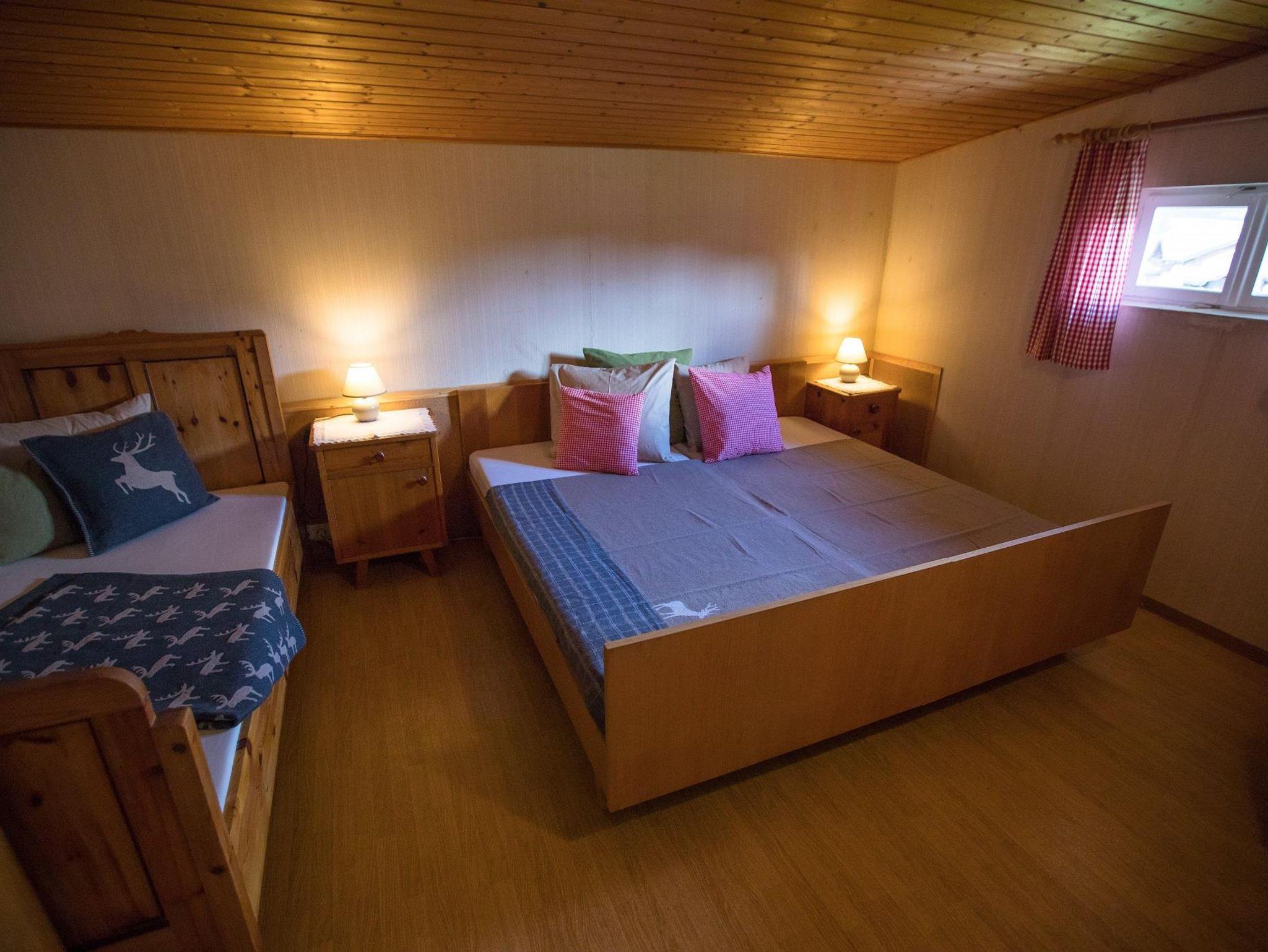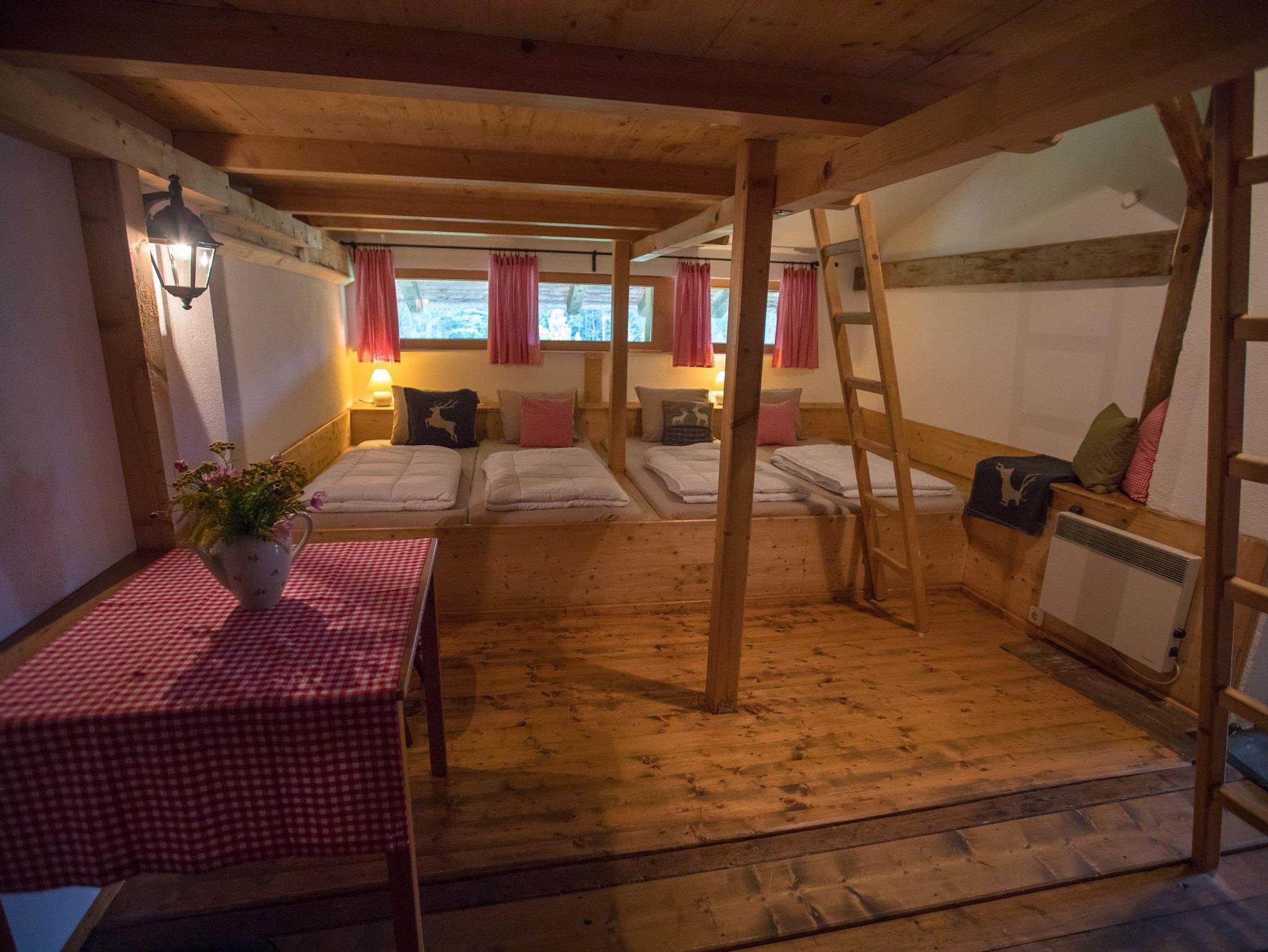 Der Sanitärbereich sowie die meisten Schlafzimmer befinden sich im ersten Obergeschoss - ein weiteres Doppelzimmer befindet sich im Erdgeschoss. Zusätzlich befindet sich im Dachgeschoss ein großes Matratzenlager für 9 Personen sowie ein weiteres Dreibettzimmer. Insgesamt gibt es bis zu 23 Betten.