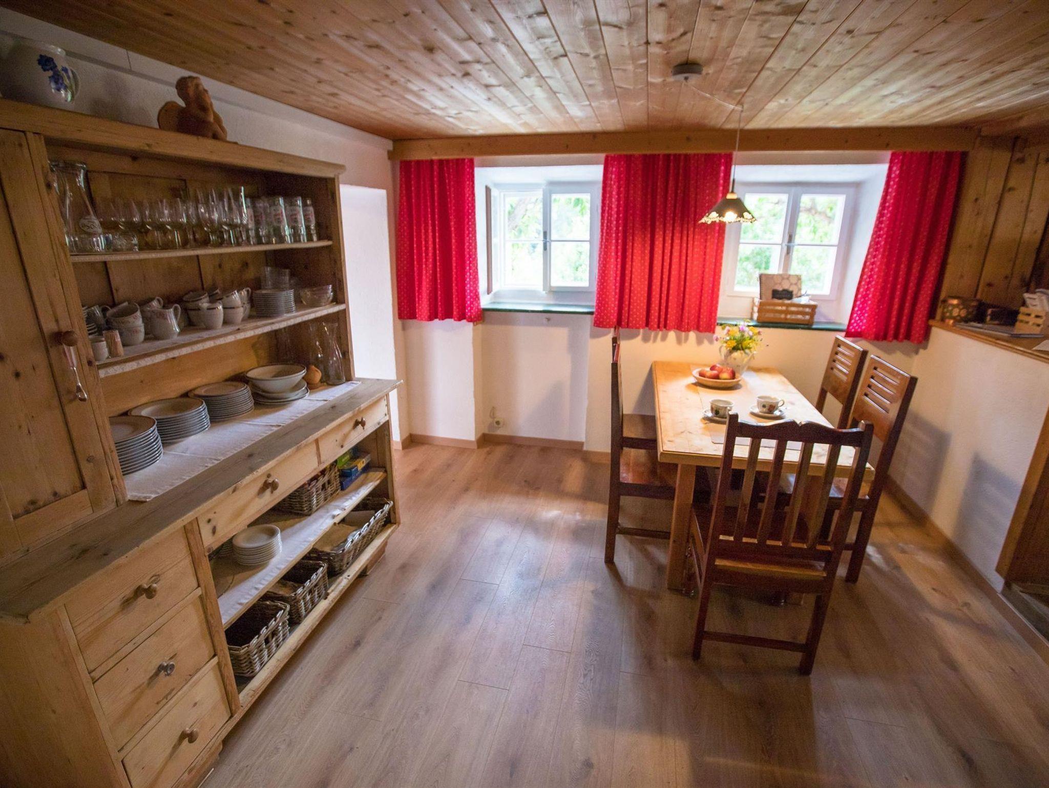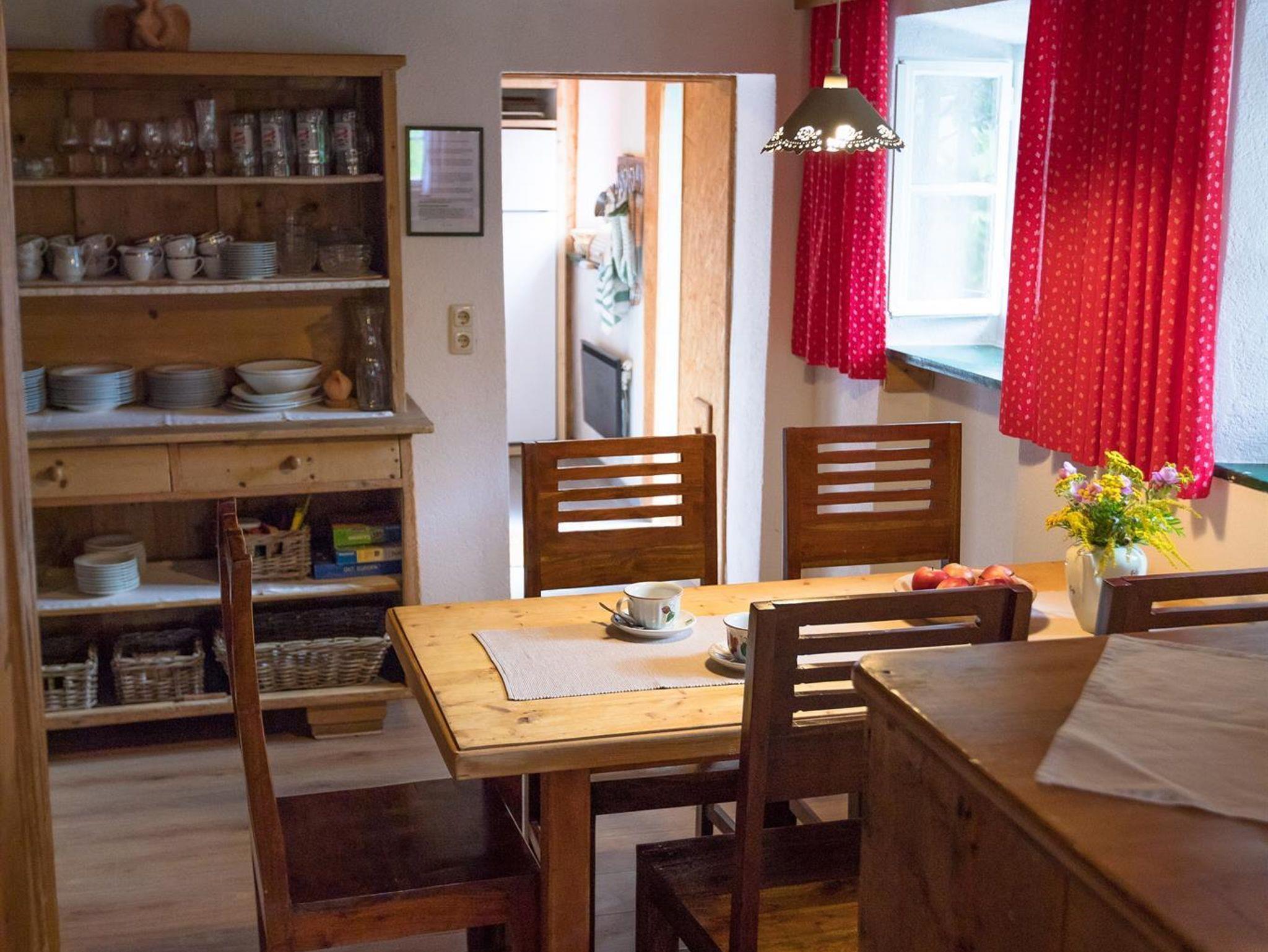 Die Wohnküche samt Kochmöglichkeit befindet sich im Erdgeschoss des Hauses. Sie verfügt über Elektroherd, Mikrowelle, Backofen, Warmwasserspüle, Kühl- und Gefrierschrank, Geschirrspüler, Koch- und Speisegeschirr, Filter-Kaffeemaschine, Wasserkocher, Toaster, und einen Tisch für fünf Personen.