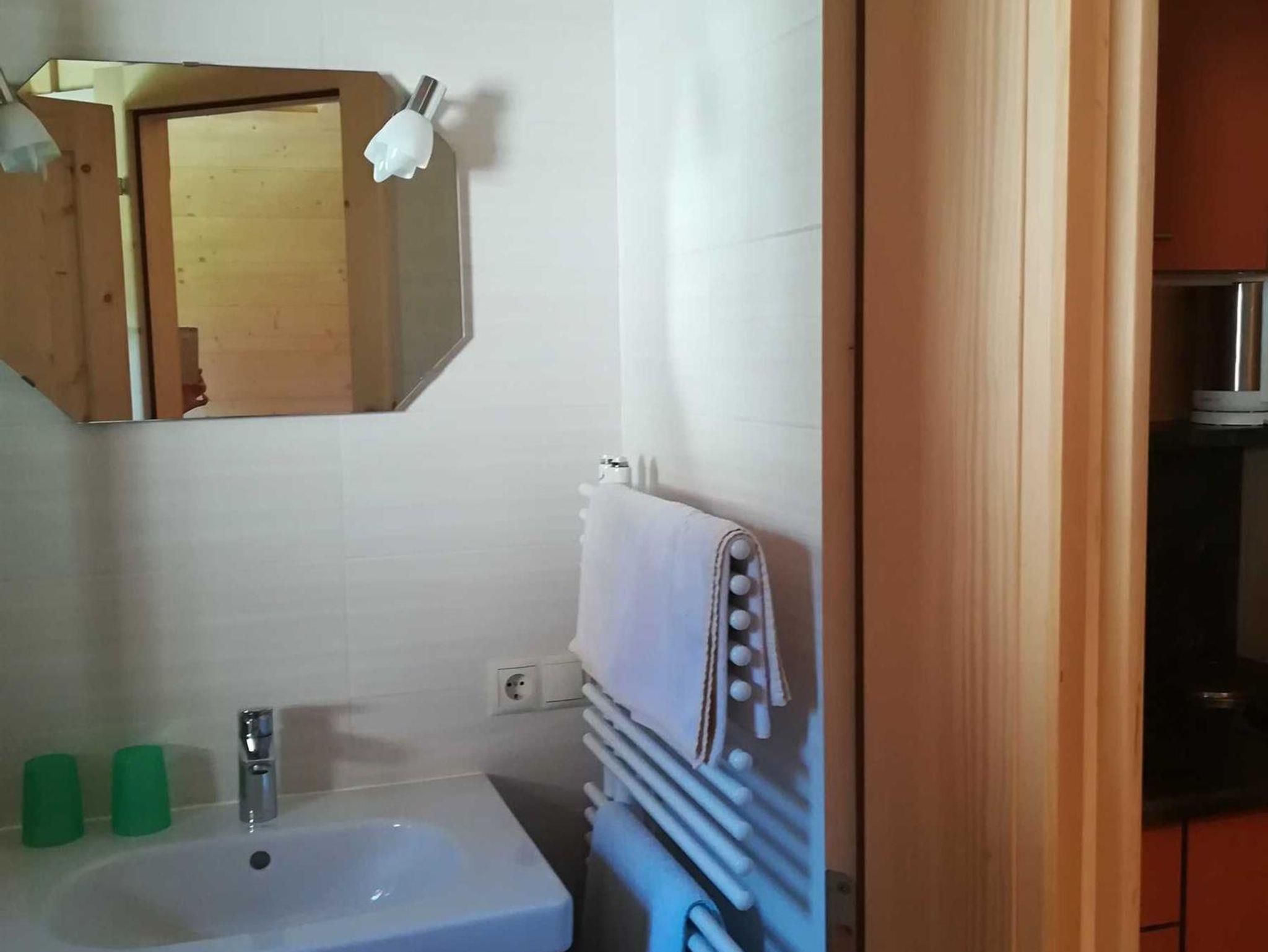 Gemütliches Doppelzimmer im Tiroler Holzhausstil, mit kleiner Kochmöglichkeit, Essecke, Kühlschrank, TV und Bad mit Dusche und WC.