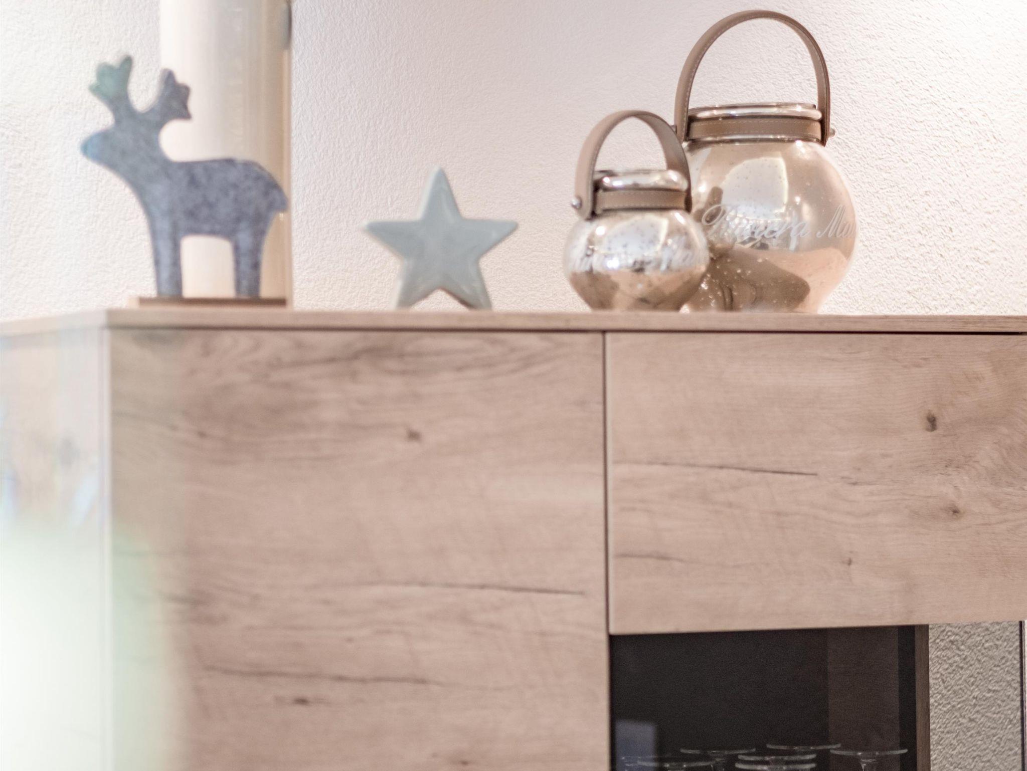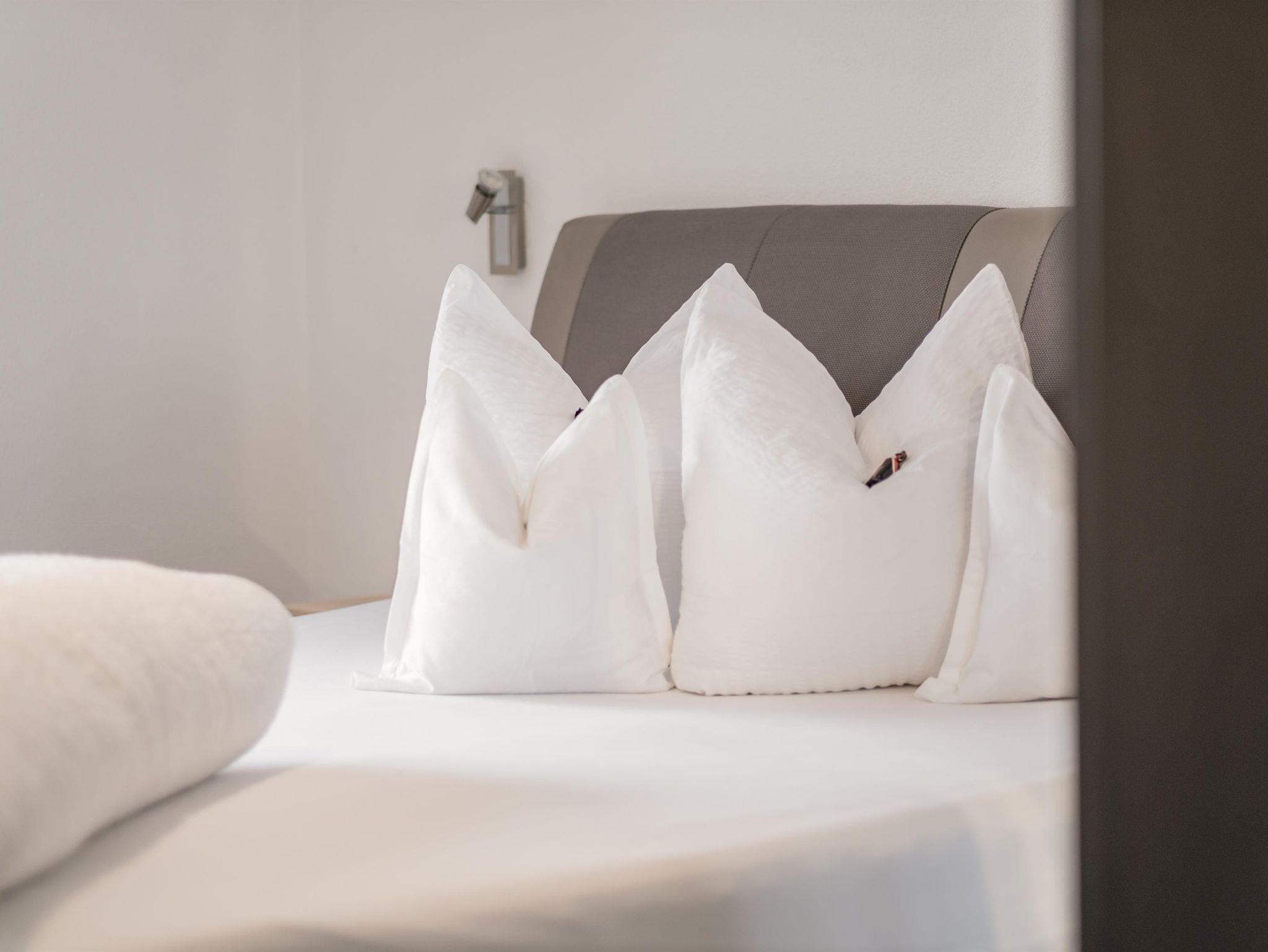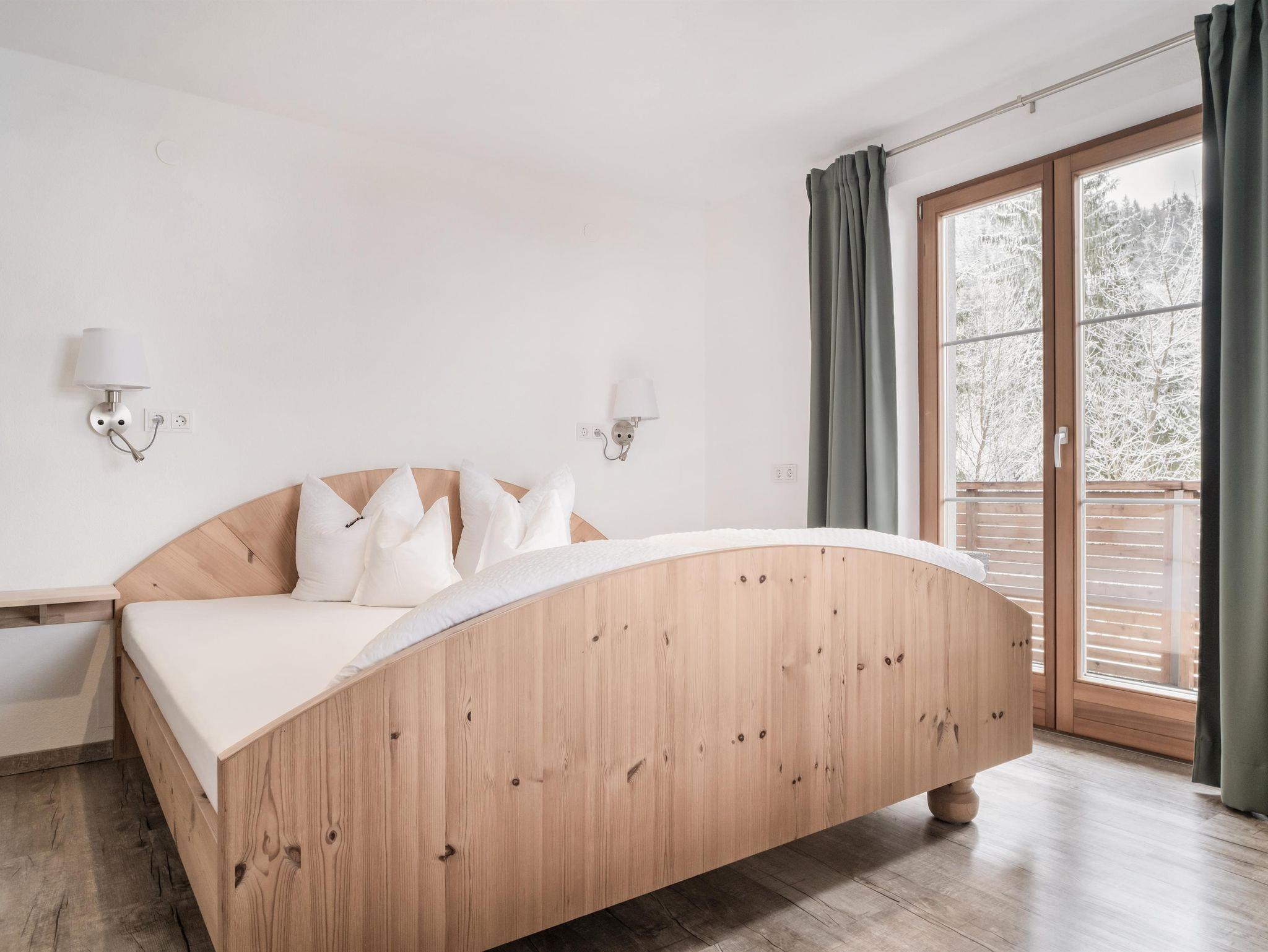 • 1. Stock: Ein Badezimmer mit viel Stauraum, ein Familienzimmer mit Vollholzbett (200 x 200 cm), ein Zimmer mit Boxspringbett (180 x 200 cm) und ein Doppelstockbettzimmer (180 x 200 cm). Alle Schlafzimmer haben Zugang zum Balkon.