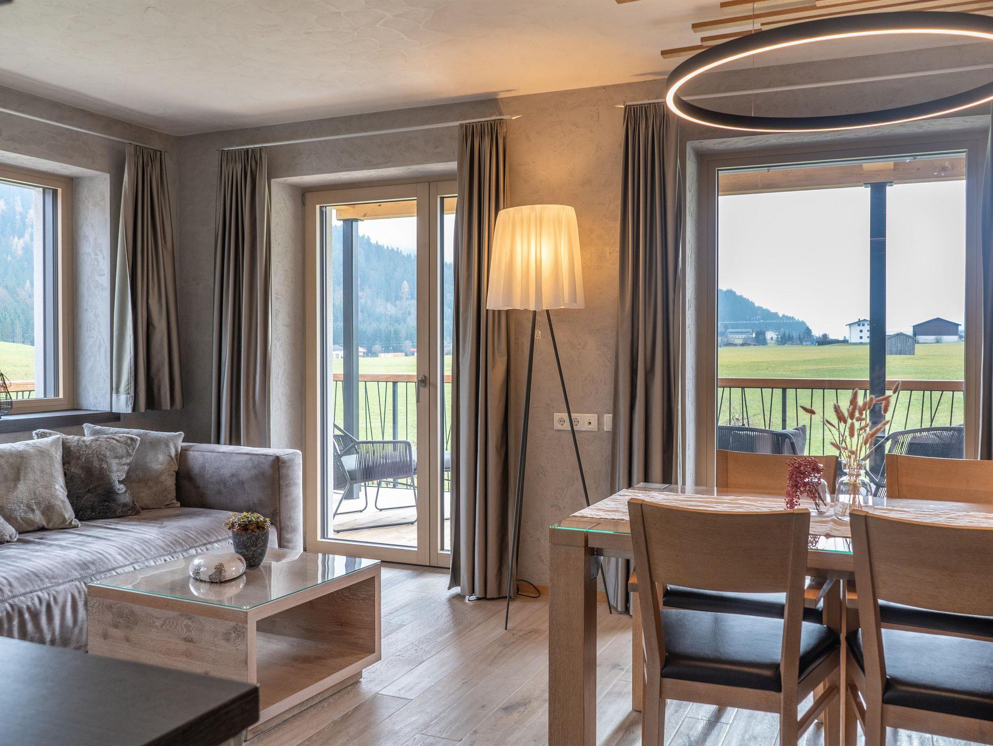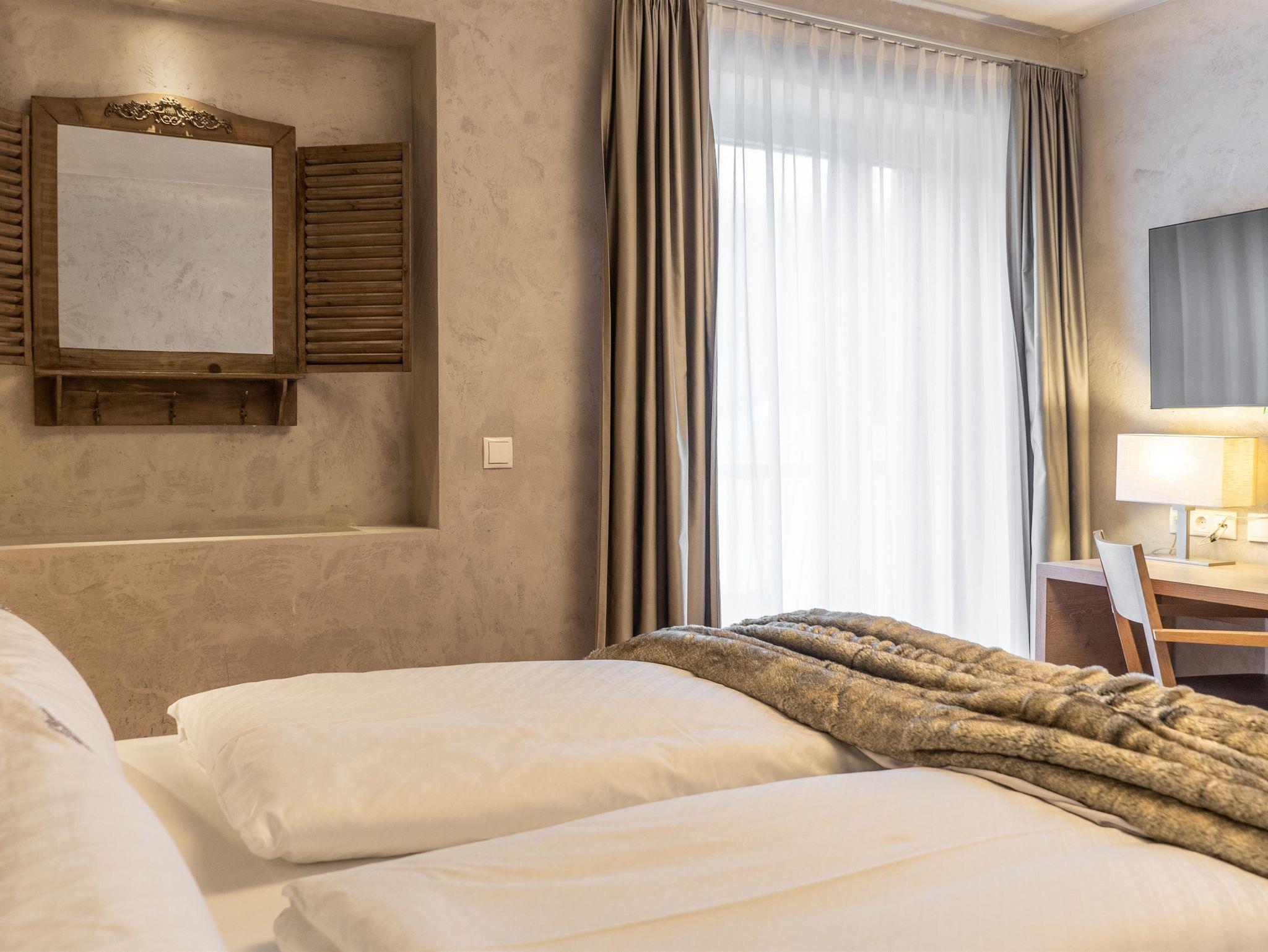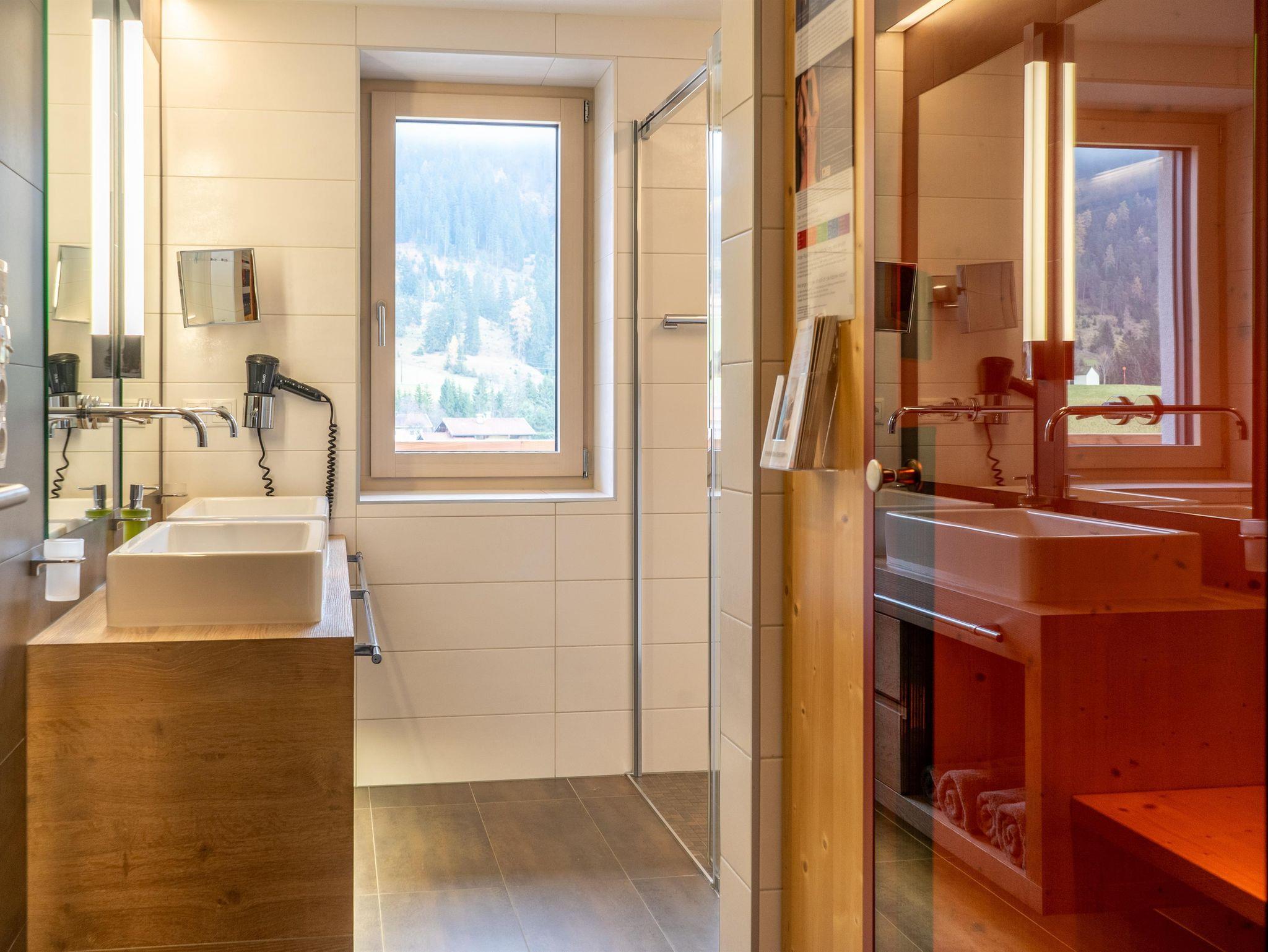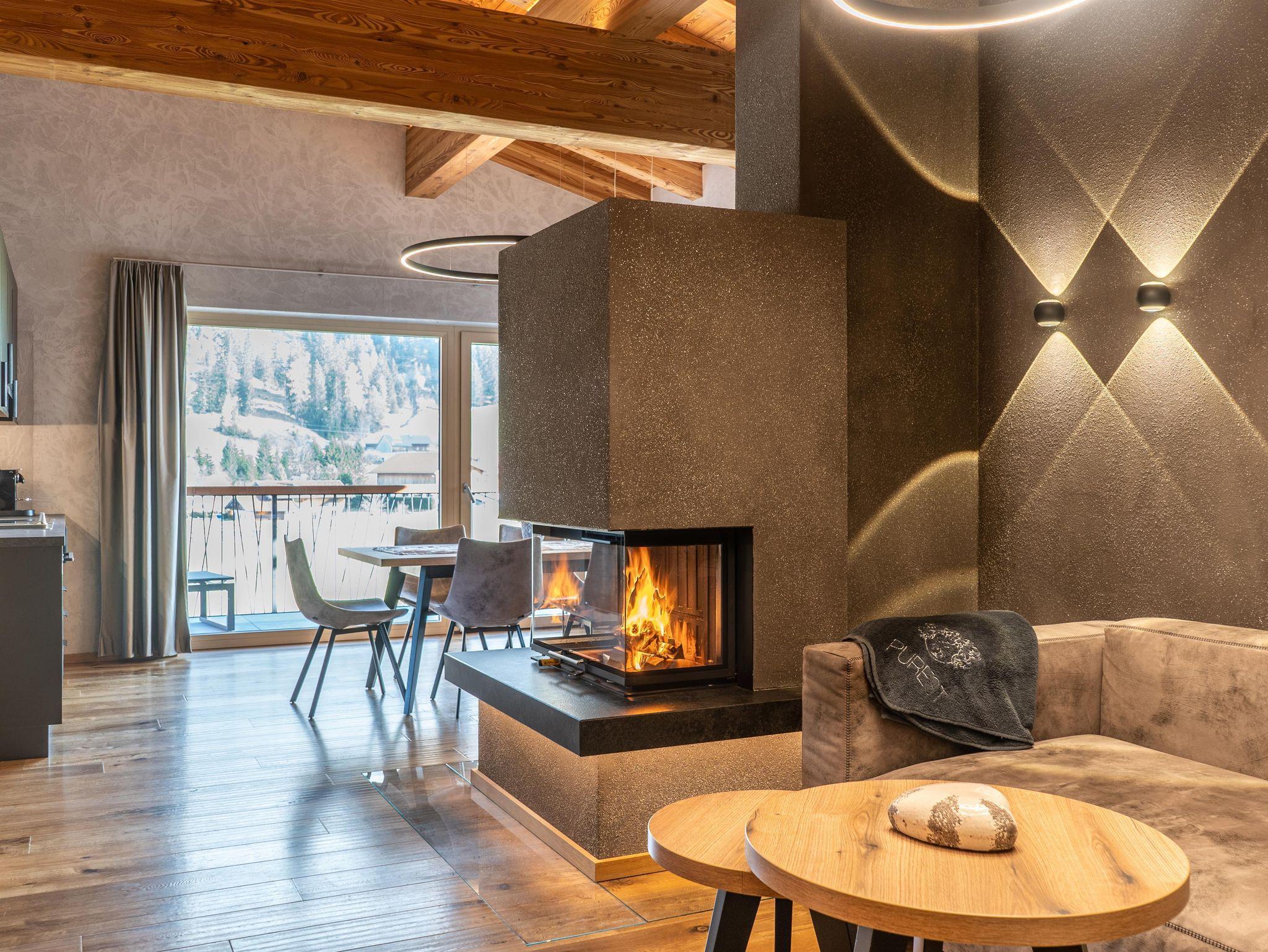 Unsere exquisite Appartement PUREST Passion ist eine neue, helle und freundliche 47m² Ferienwohnung bestehend aus einem Wohnraum mit Schlafmöglichkeit für die 3. und 4. Person sowie einer Küchenzeile. Ein separates Schlafzimmer für 2 Personen ist mit einer Schrank-, Schreibtischkombination ausgestattet. Das modern eingerichtete Bad mit begehbarer Dusche bietet als Besonderheit eine Physotherm Infrarotkabine. Das WC ist vom Bad getrennt. Der 21m² große Süd- und Ost-Balkon bietet einen wunderschönen Panorama-Ausblick auf Wiesen und Berge.