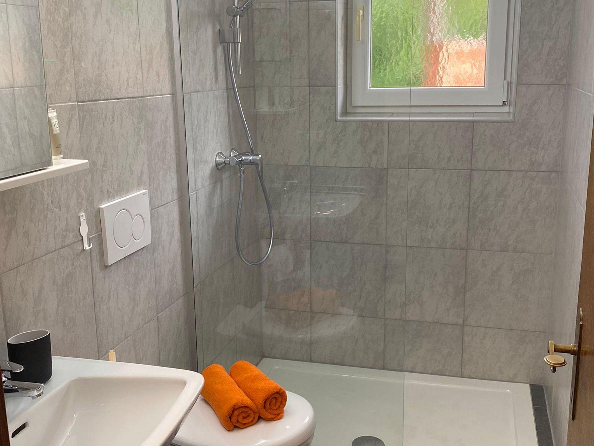 Die Ferienwohnung verfügt über ein Badezimmer mit Dusche und WC sowie einer Garderobe, 2 Schlafzimmer, einer Küchenzeile, einem Ess-/ Wohnbereich mit TV und einem Anziehraum.
