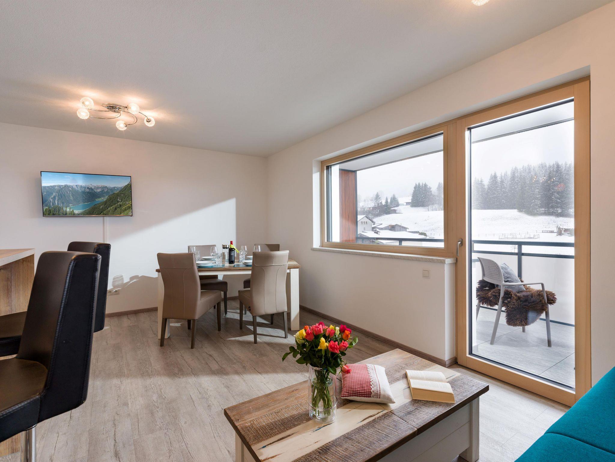 Ferienwohnung mit 1 Doppelzimmer, 1 Einzelzimmer, Badezimmer mit Dusche, Badewanne und WC. Separates WC, Abstellraum, Garderobe und voll ausgestattete Wohnküche mit Smart-SAT-TV, WLAN und Nespresso-Kaffeemaschine, Esstisch für 4 Personen, Couch (Schlafmöglichkeit für 1 Person) und großem Balkon (Nord-West-Ausrichtung) mit herrlichem Ausblick!