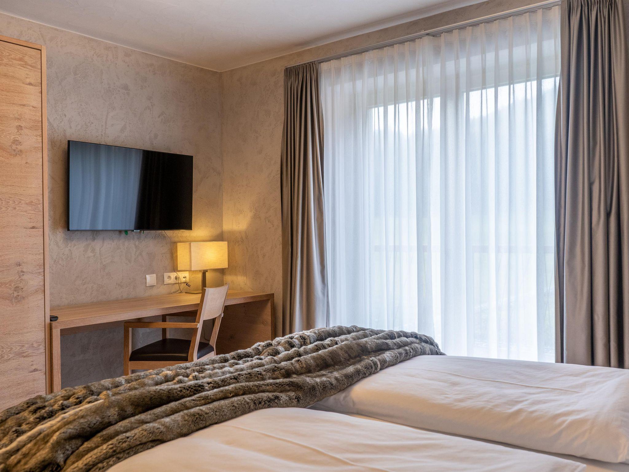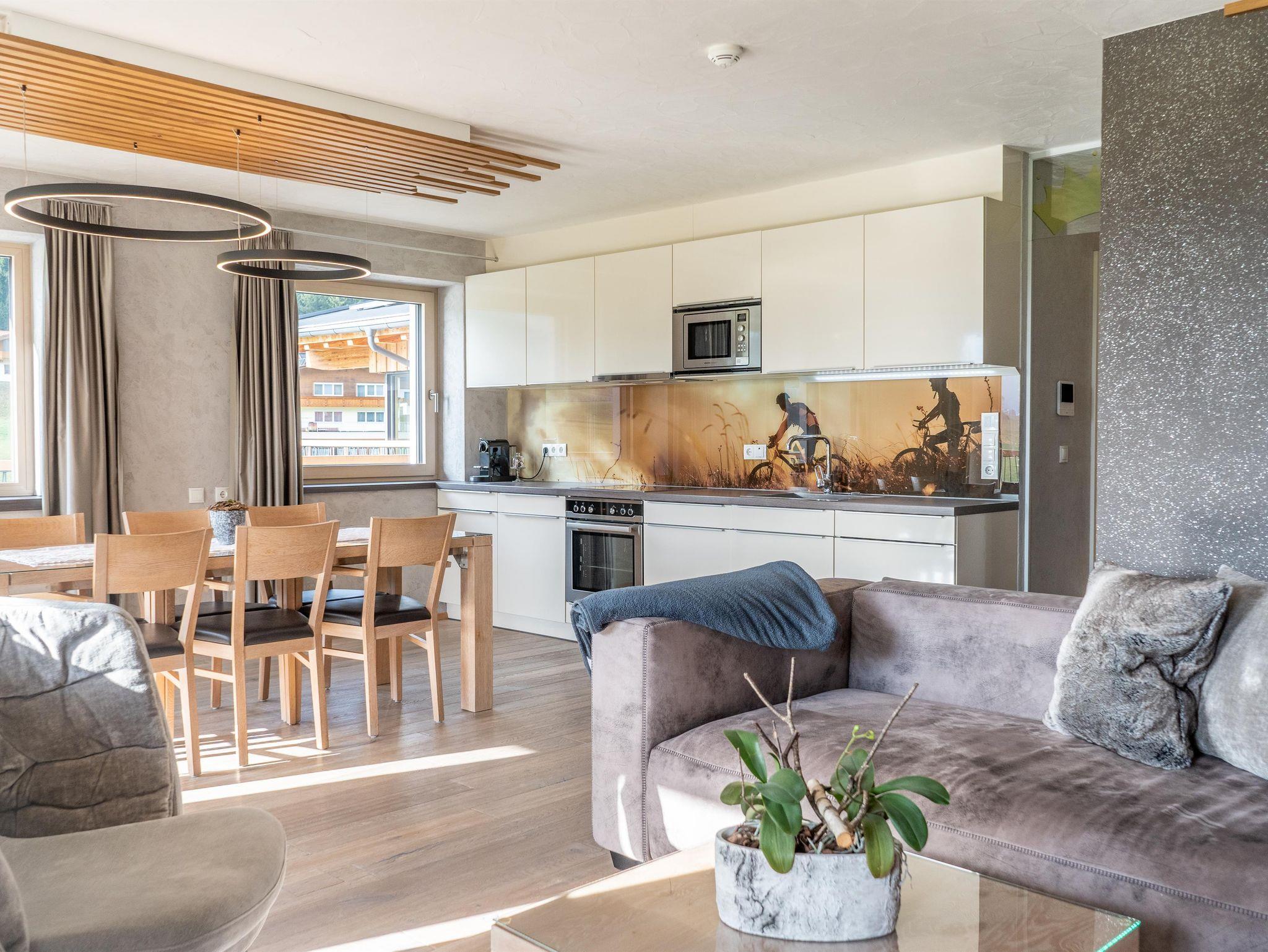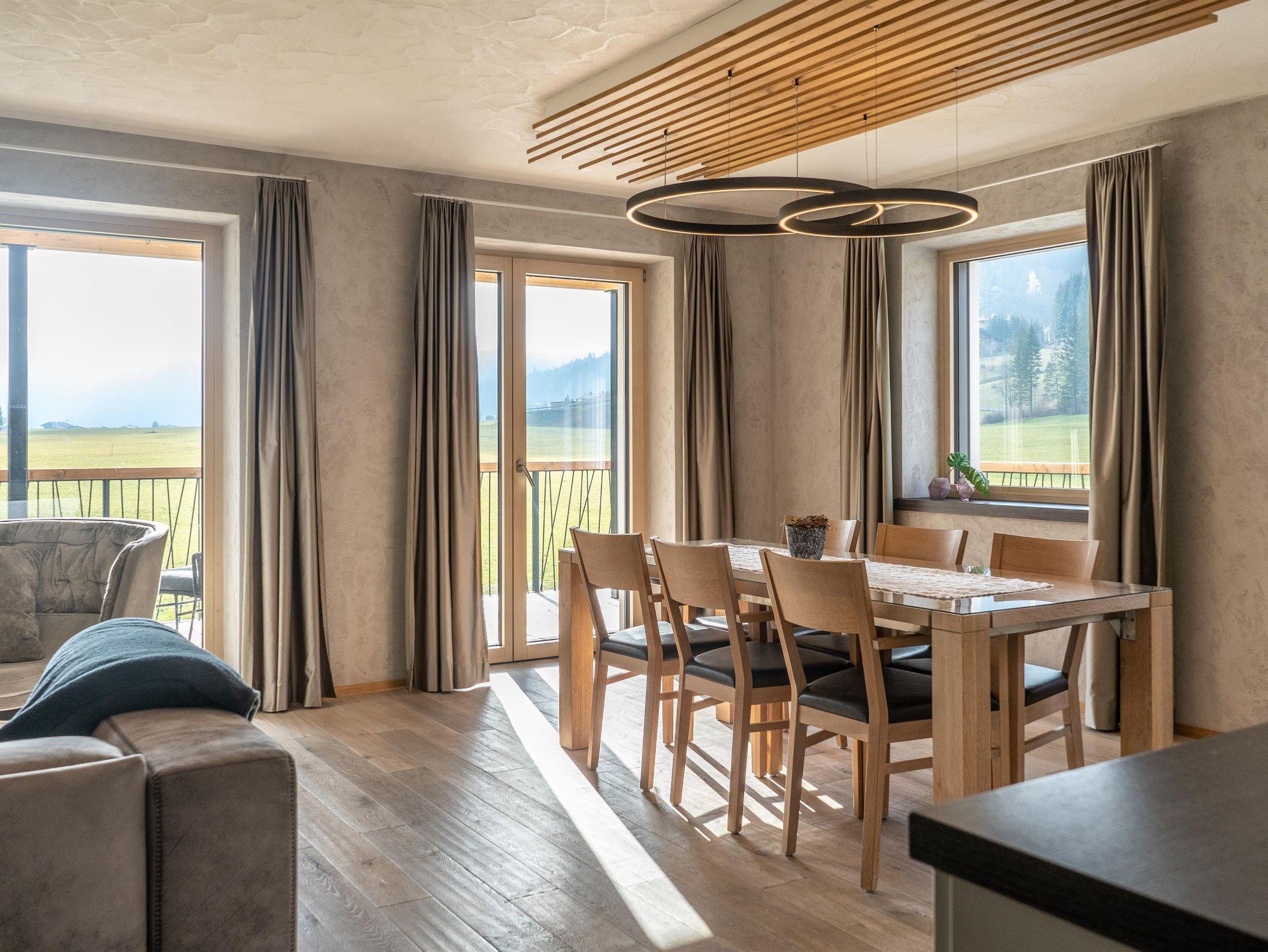 Unsere exquisite Appartement PUREST Happiness ist eine neue, helle und freundliche 72m² Ferienwohnung bestehend aus einem Wohnraum mit einer hochwertigen Schlafmöglichkeit für die 5. und 6. Person sowie einer Küchenzeile. Zwei separate Schlafzimmer für je 2 Personen sind jeweils mit einer Schrank-, Schreibtischkombination ausgestattet. Das modern eingerichtete Bad mit begehbarer Dusche bietet als Besonderheit eine Infrarotkabine. Das 2. WC ist vom Bad getrennt. Der 21m² große Süd- und West-Balkon bietet einen wunderschönen Panorama-Ausblick auf Wiesen und Berge.