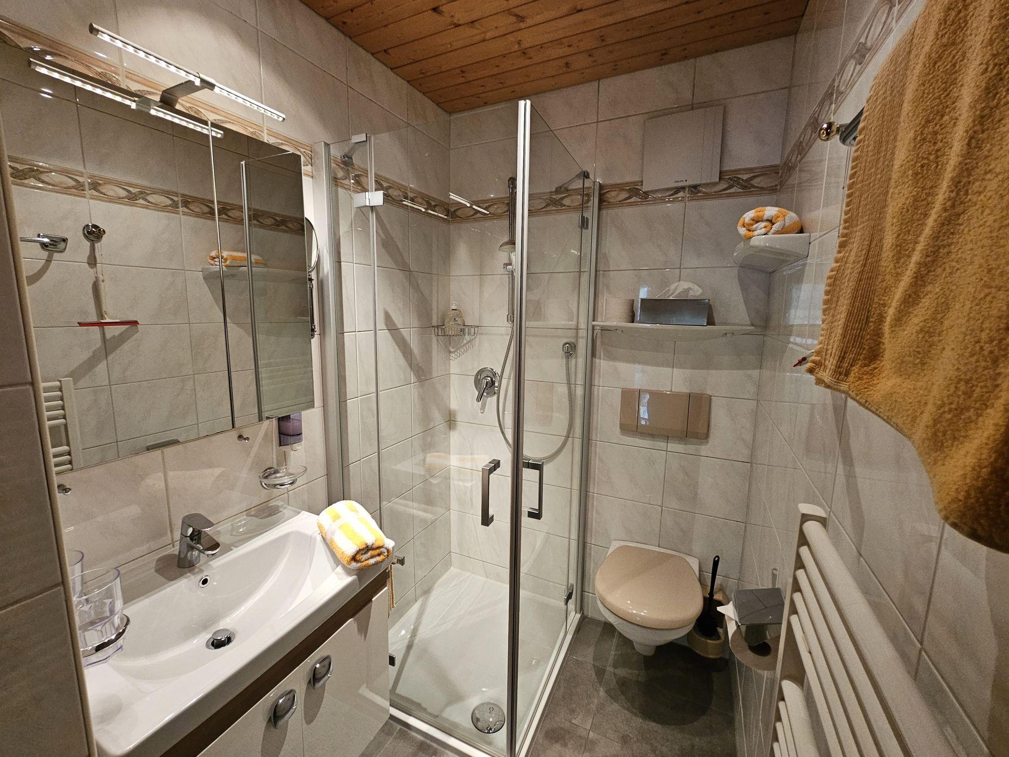 Unser kleineres Appartement NESTL/Mansarde mit 1 extra Schlafzimmer ist durch seinen besonderen Charme sehr beliebt, das Badezimmer hat eine Dusche extra und eine Sitz-Badewanne, Balkon zum Sitzen