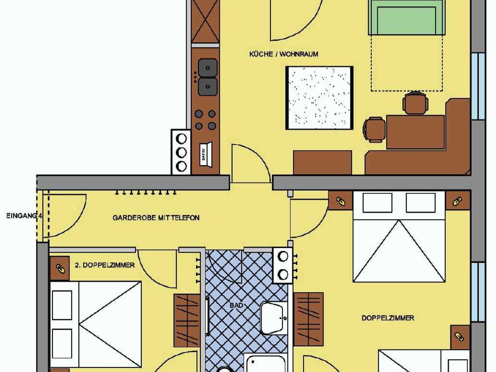 • 1 Doppelzimmer + 1 Drei- bzw. Vierbettbettzimmer