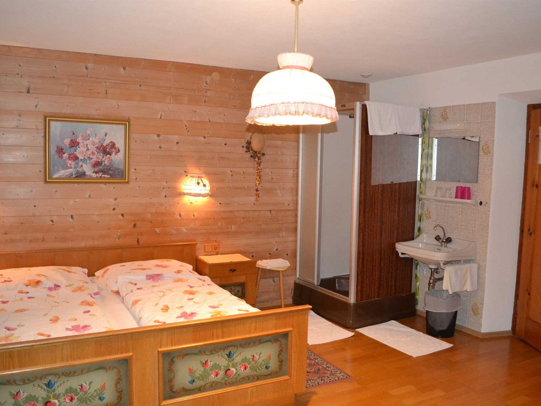 Großzügiges Gästezimmer für bis zu 4 Personen, ca. 25m². Im Zimmer befindet sich ein Doppelbett sowie eine Schlafcouch, Gitterbett möglich. Sat-TV und Dusche im Zimmer vorhanden. Das WC befindet sich am Gang.