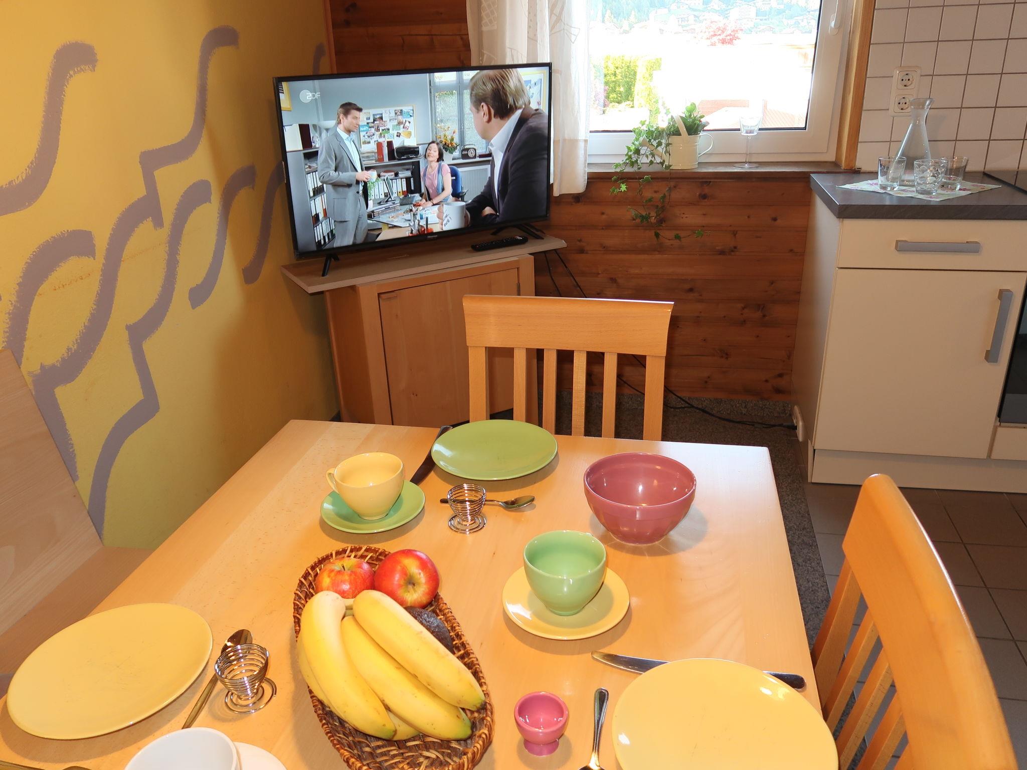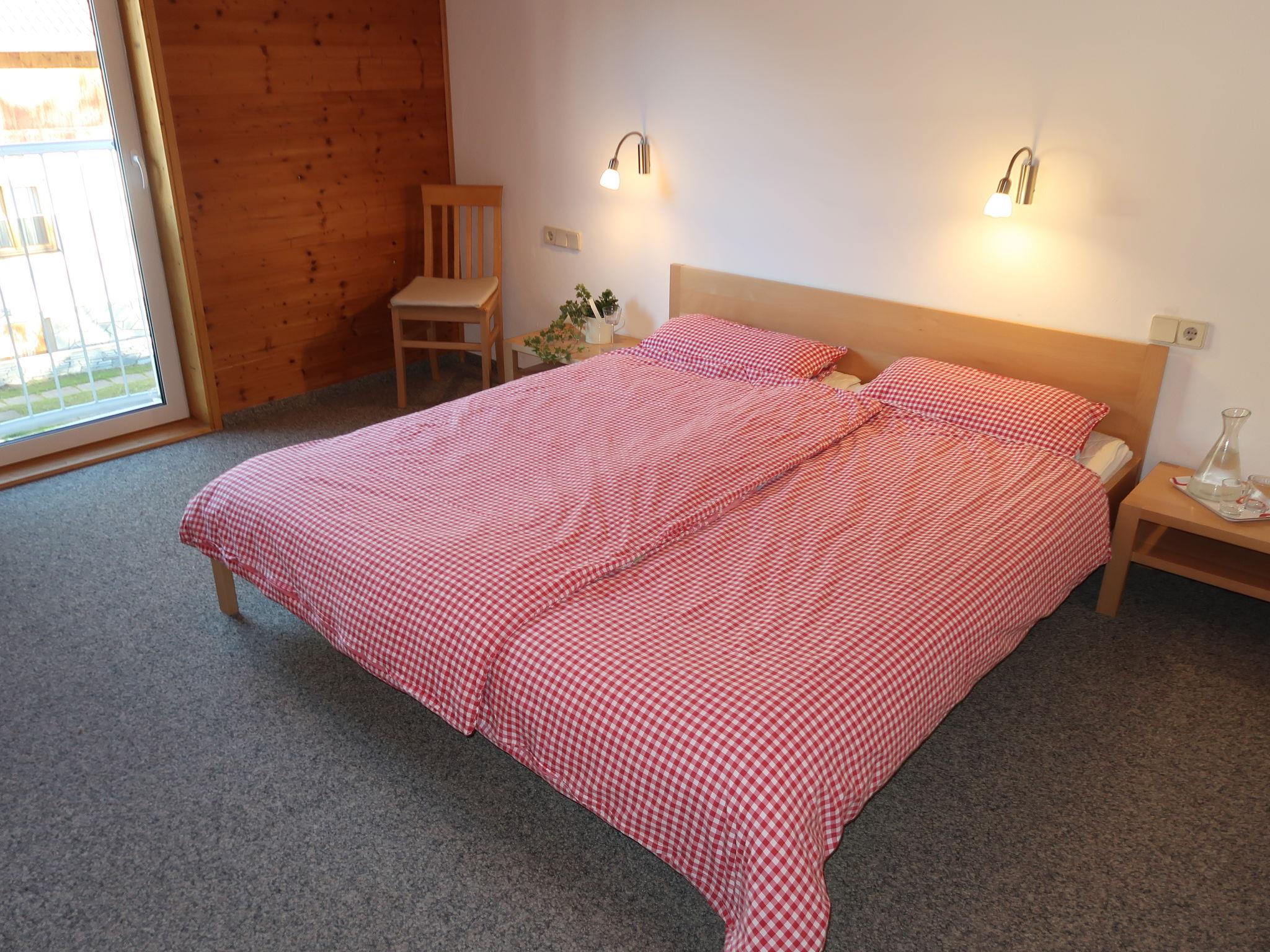 "Hochunnutz", 3-room apartment 54 m2 on 1st floor. Spacious and bright, wooden furniture furnishings: 2 double bedrooms. Kitchen-/living room (oven, dishwasher, 4 ceramic glass hob hotplates, kettle, electric coffee machine) with dining nook and satellite TV (flat screen). Bath/WC. Heating. Carpet. Beautiful view of the mountains and the countryside. Facilities: Internet (WiFi, free). Parking (roofed, 1 car). Please note: non-smokers only. A shared balcony (west orientation) with balcony furniture can be reached via the floor corridor.
