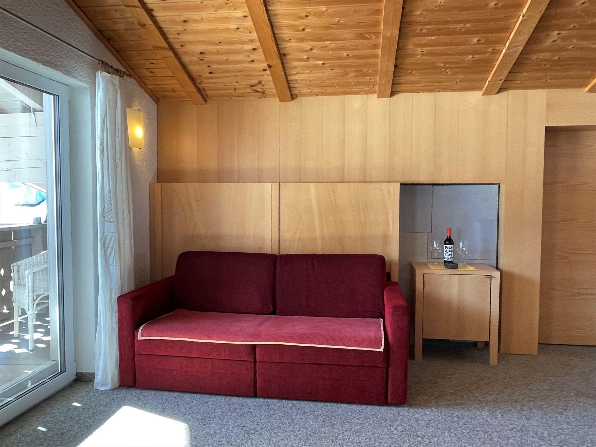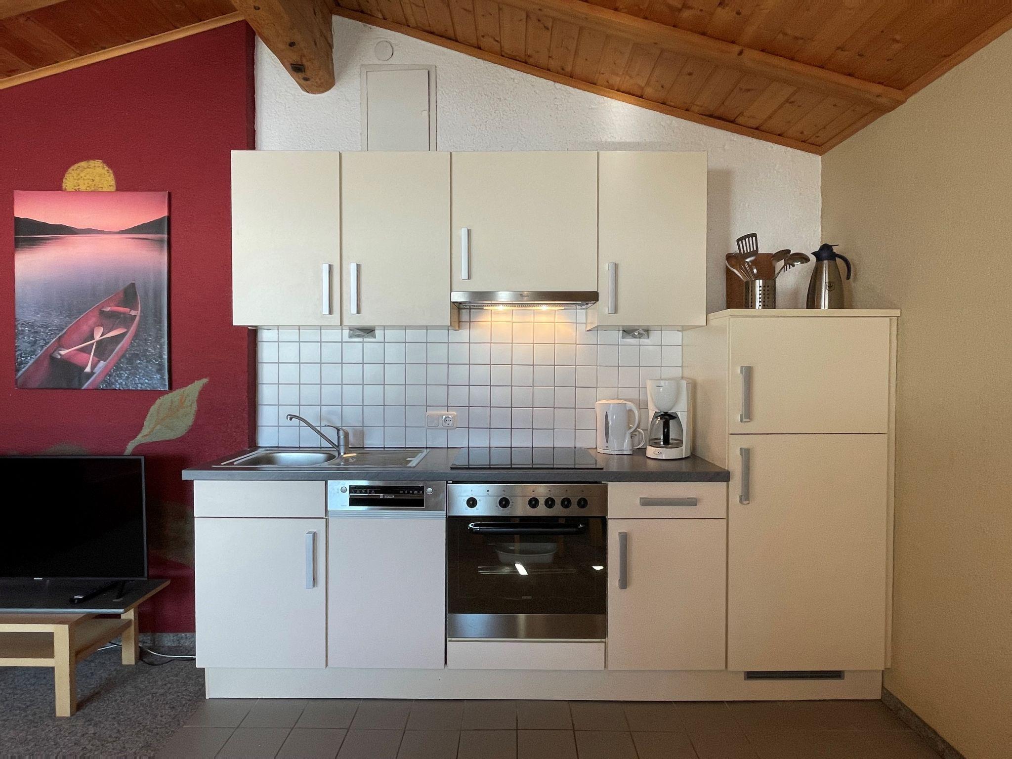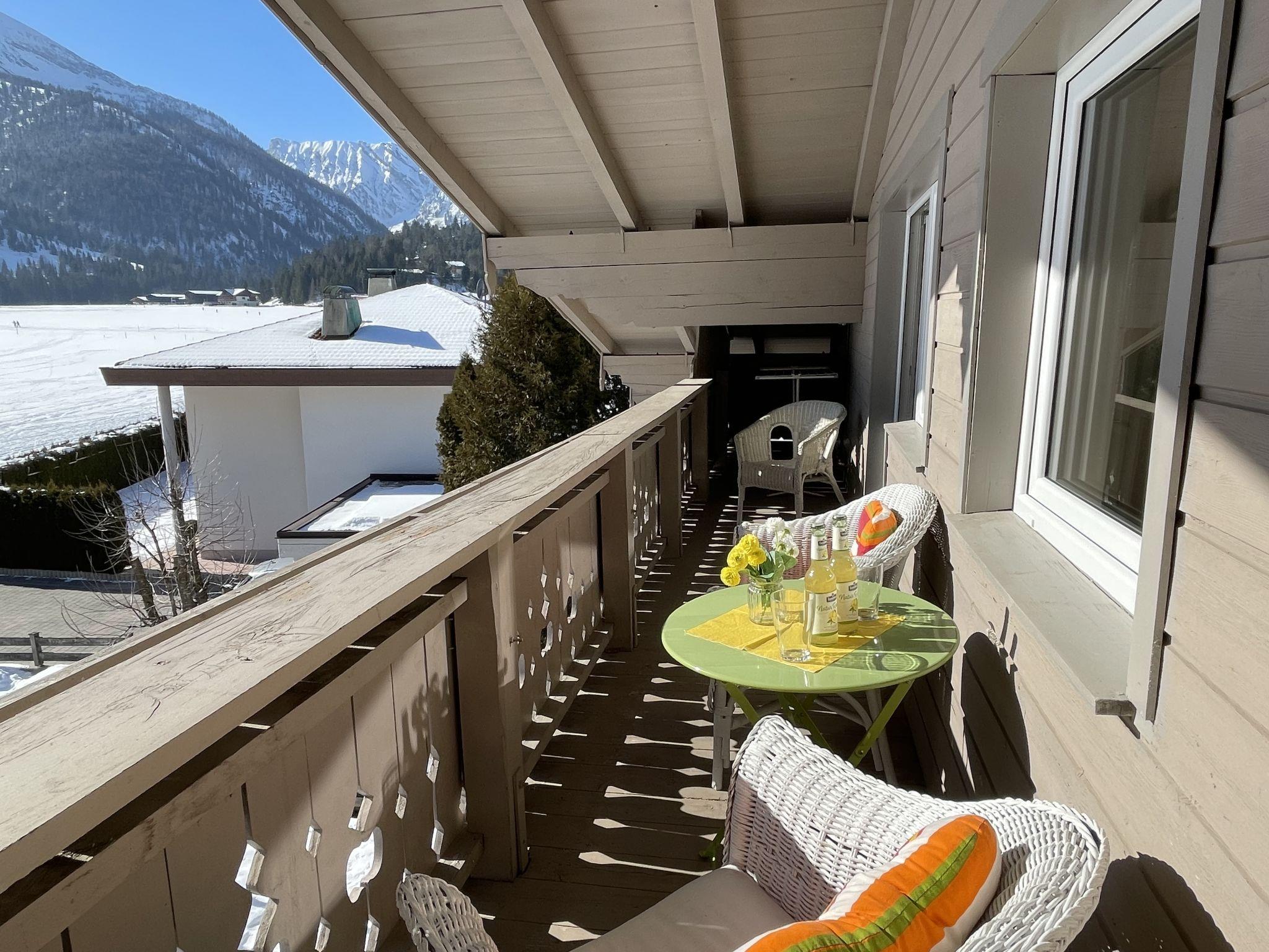 "Rofan", 3-room apartment 57 m2, on the top floor. Object suitable for 3 adults + 2 children. With sloping ceilings, cosy and wooden furniture furnishings: large living/sleeping room with 1 double sofabed, dining nook and satellite TV (flat screen). Exit to the balcony. 1 small room with sloping ceilings, ceiling height 80 - 150 cm with sliding door with 2 beds. 1 double bedroom. Open kitchen (oven, dishwasher, 4 ceramic glass hob hotplates, electric coffee machine). Bath/WC with corner bath. Oil heating. Balcony. Balcony furniture, box-room. Very beautiful view of the mountains. Facilities: Internet (WiFi, free). Parking (roofed, 1 car). Please note: non-smokers only. Bed layout is flexible. There are more sleeping options available than the maximum number of people allowed which may, however, not be exceeded.