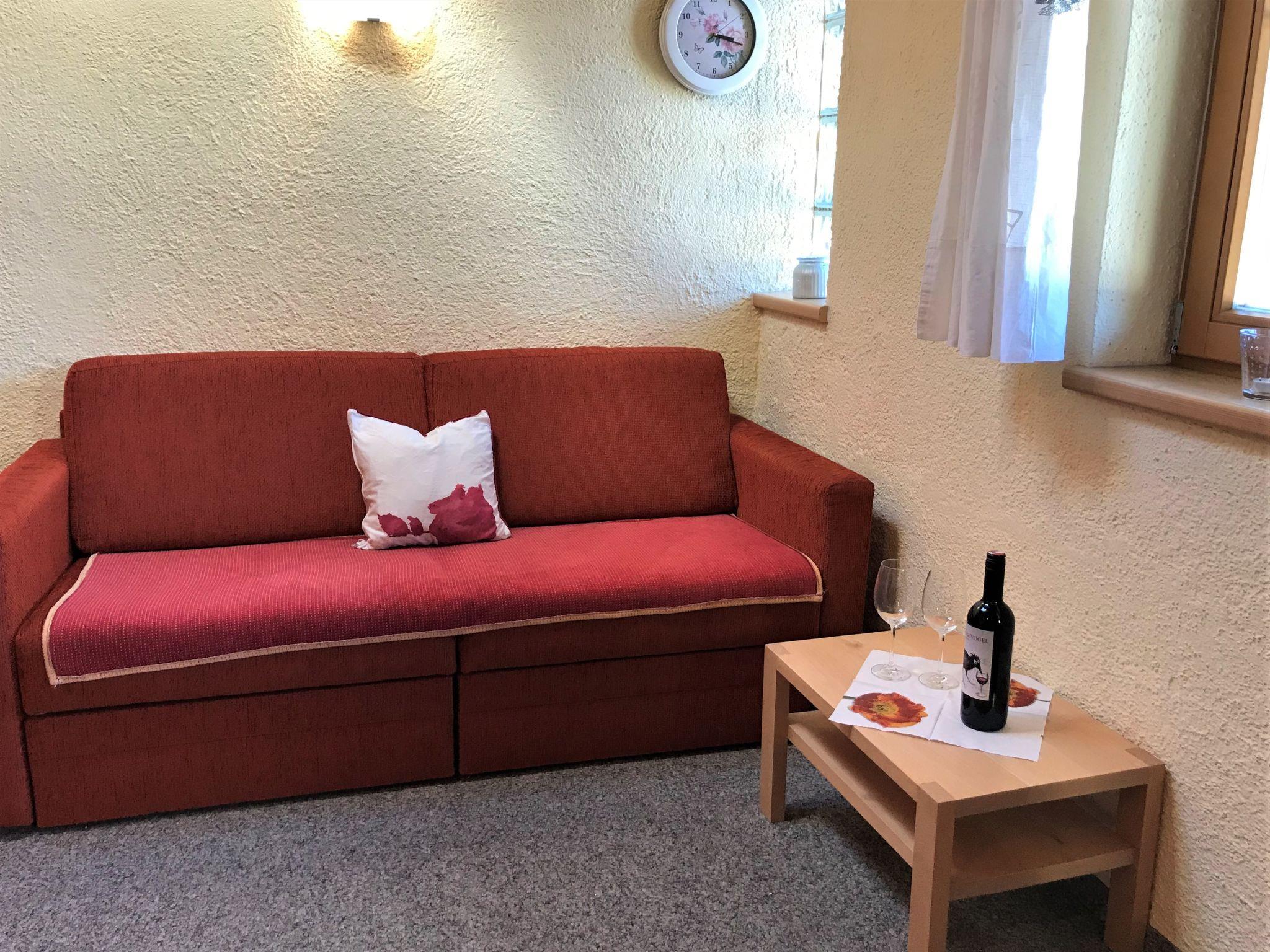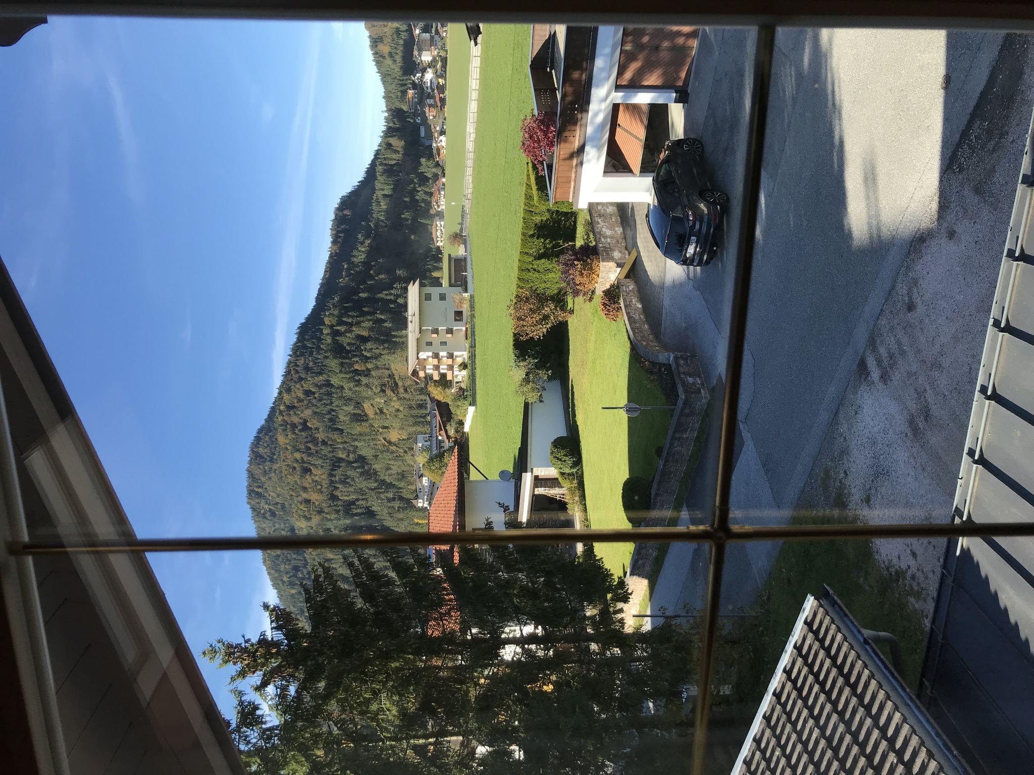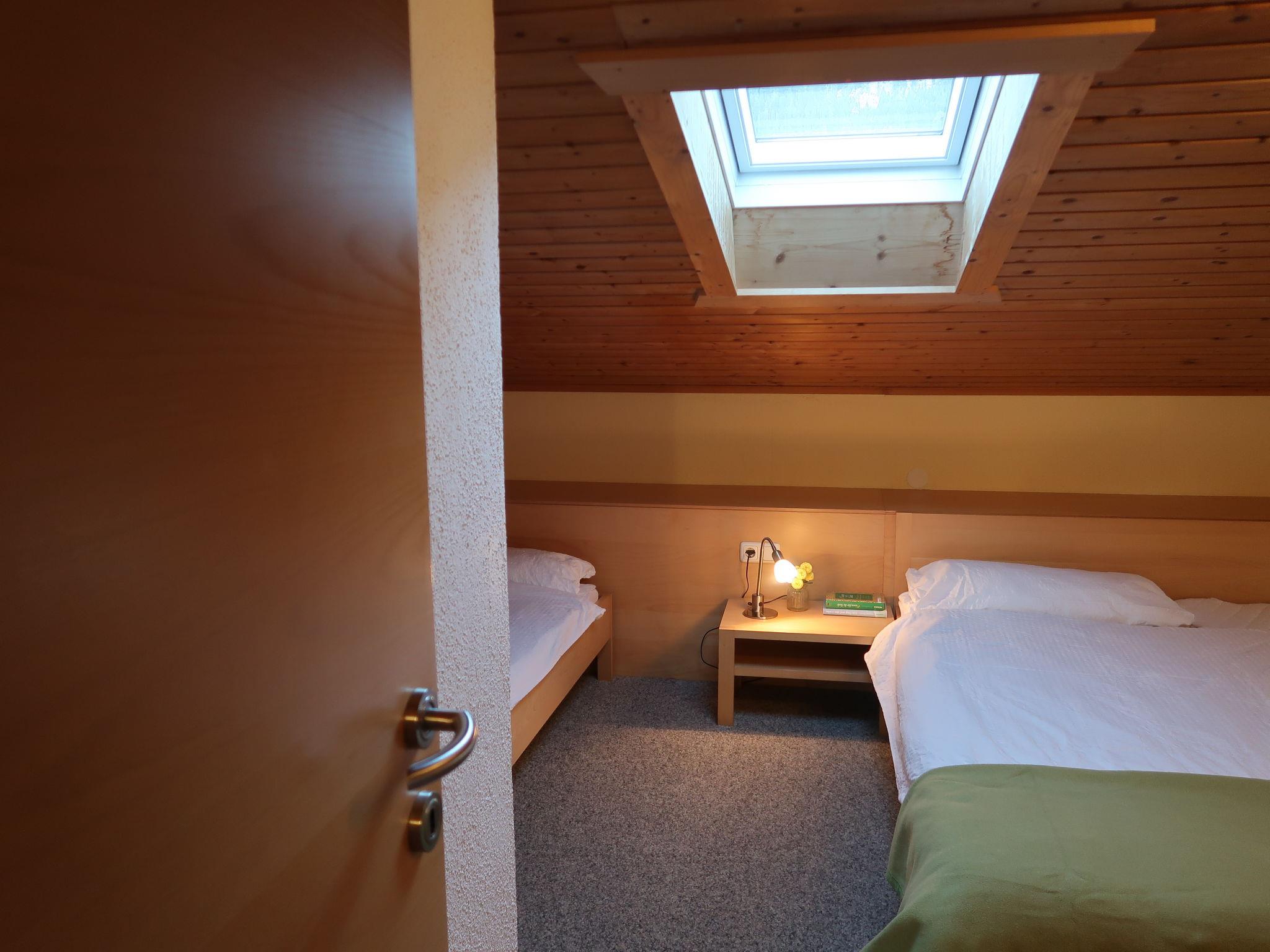"Christlum", 2-room apartment 51 m2, on the top floor. Partly with sloping ceilings, wooden furniture furnishings: living/sleeping room with 1 sofabed (140 cm), dining table and satellite TV (flat screen). 1 room with 1 bed and 1 double bed. Open kitchen (oven, dishwasher, 4 ceramic glass hob hotplates, kettle, electric coffee machine). Bathroom, sep. WC. Heating. Carpet. Beautiful view of the mountains and the countryside. Facilities: Internet (WiFi, free). Parking (roofed, 1 car). Please note: non-smokers only. A shared balcony (west orientation) with balcony furniture on the first floor can be reached via the floor corridor.