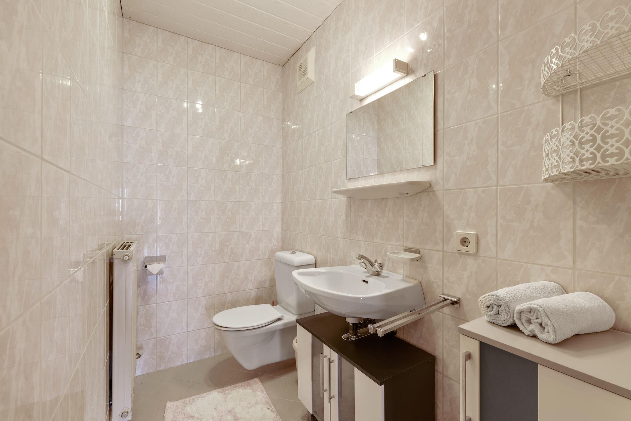 På 2. etage: (entre, Stue(Fjernsyn(parabol)), åbent køkken(komfur, ovn), soveværelse(enkeltseng, dobbeltseng), soveværelse(dobbeltseng), soveværelse(dobbeltseng), badeværelse(bruser, håndvask, toilet), badeværelse(håndvask, toilet)) bibliotek, legeværelse, skiopbevaring, fryser(deles med andre gæster), vaskemaskine(betalt), balkon, varme(central), terrasse, have, havemøbler, grill, parkering, sandkasse, bordtennisbord, barneseng, barnestol