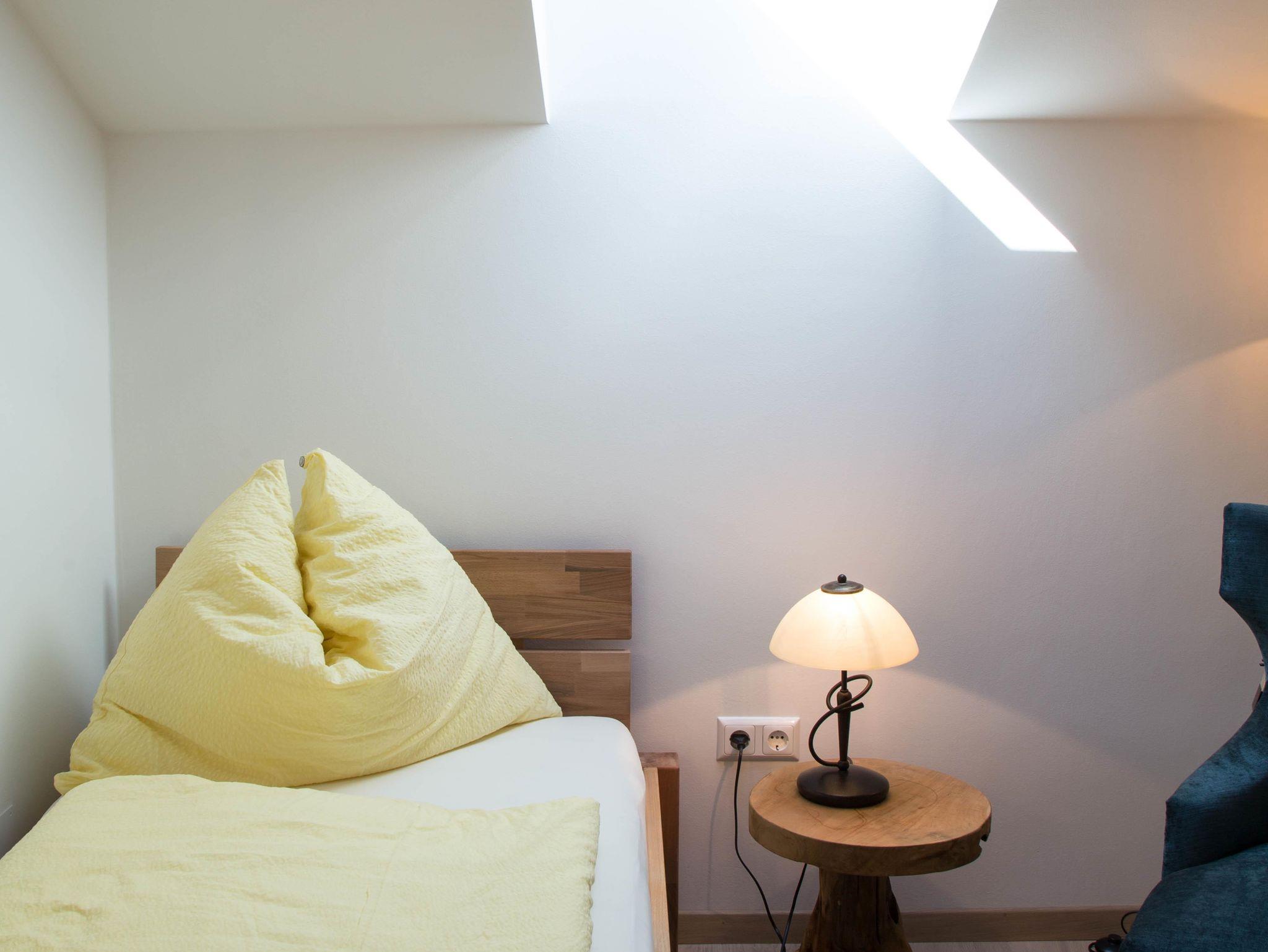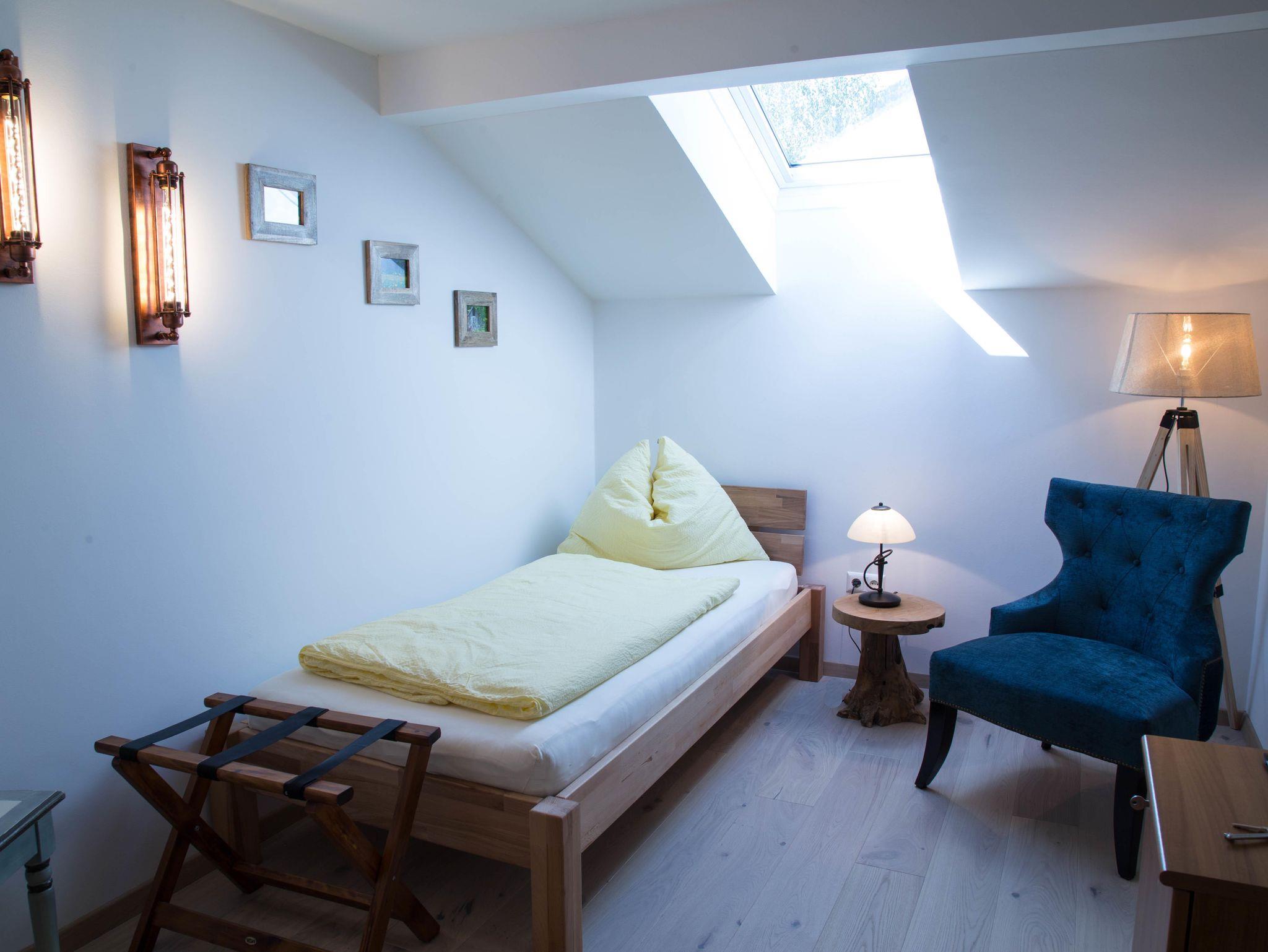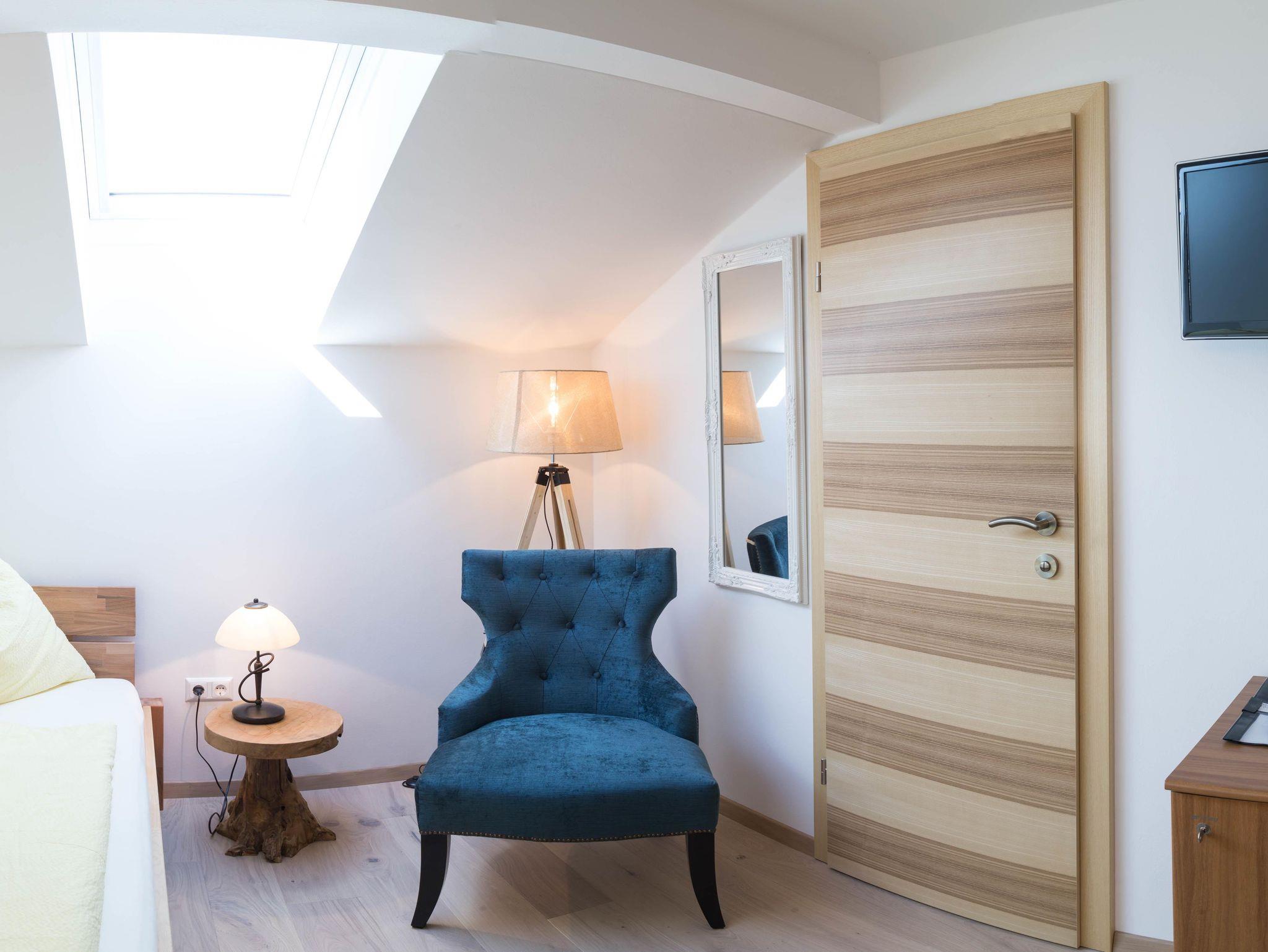Wir verfügen über 1 Einzelzimmer ohne Balkon. Dieses ist mit Dusche, WC, Minibar, Haartrockner, TV-Flachbildschirm, Safe und WLAN ausgestattet. Es liegt auf der zweiten Etage und verfügt über ein Dachfenster.