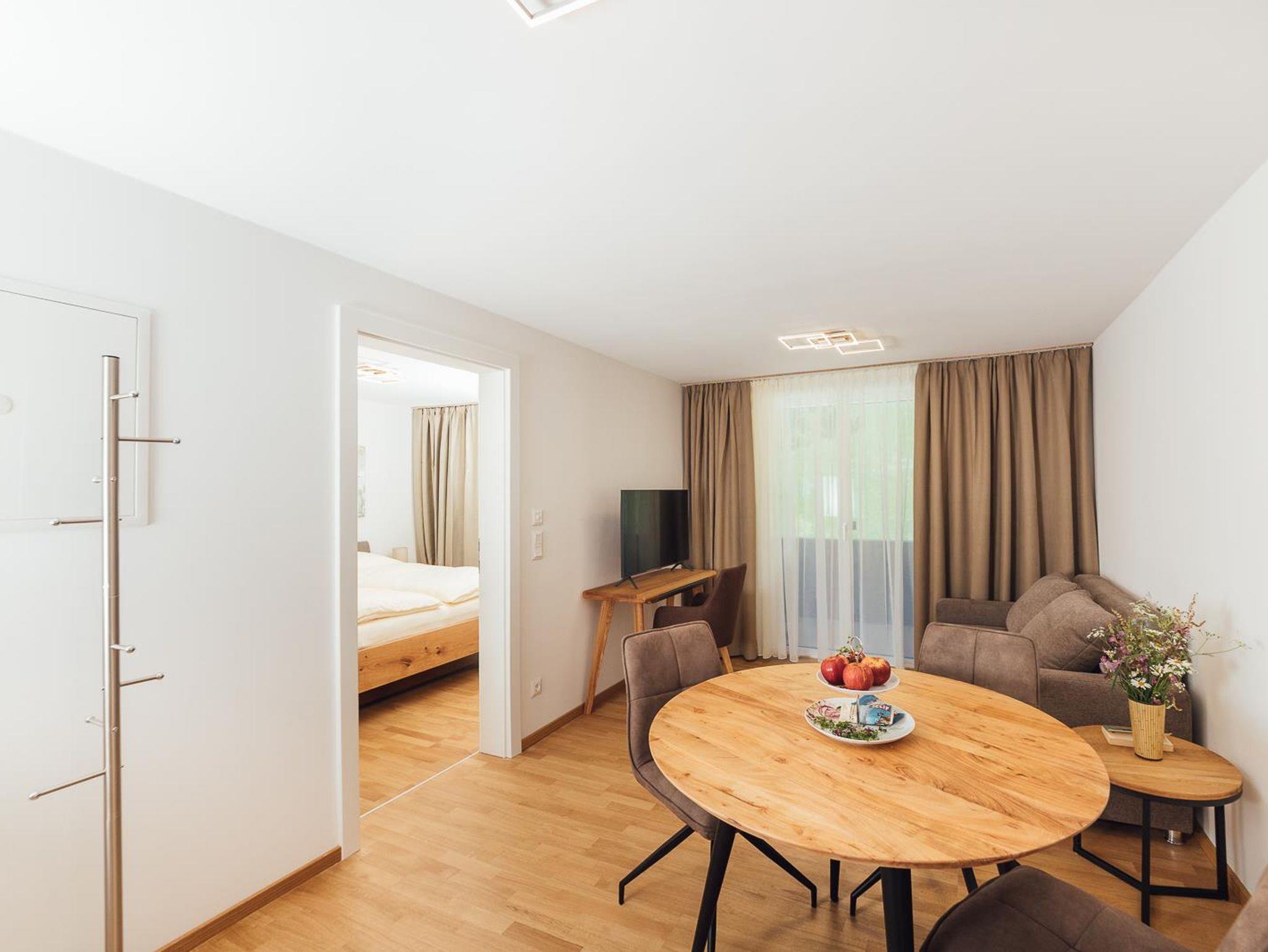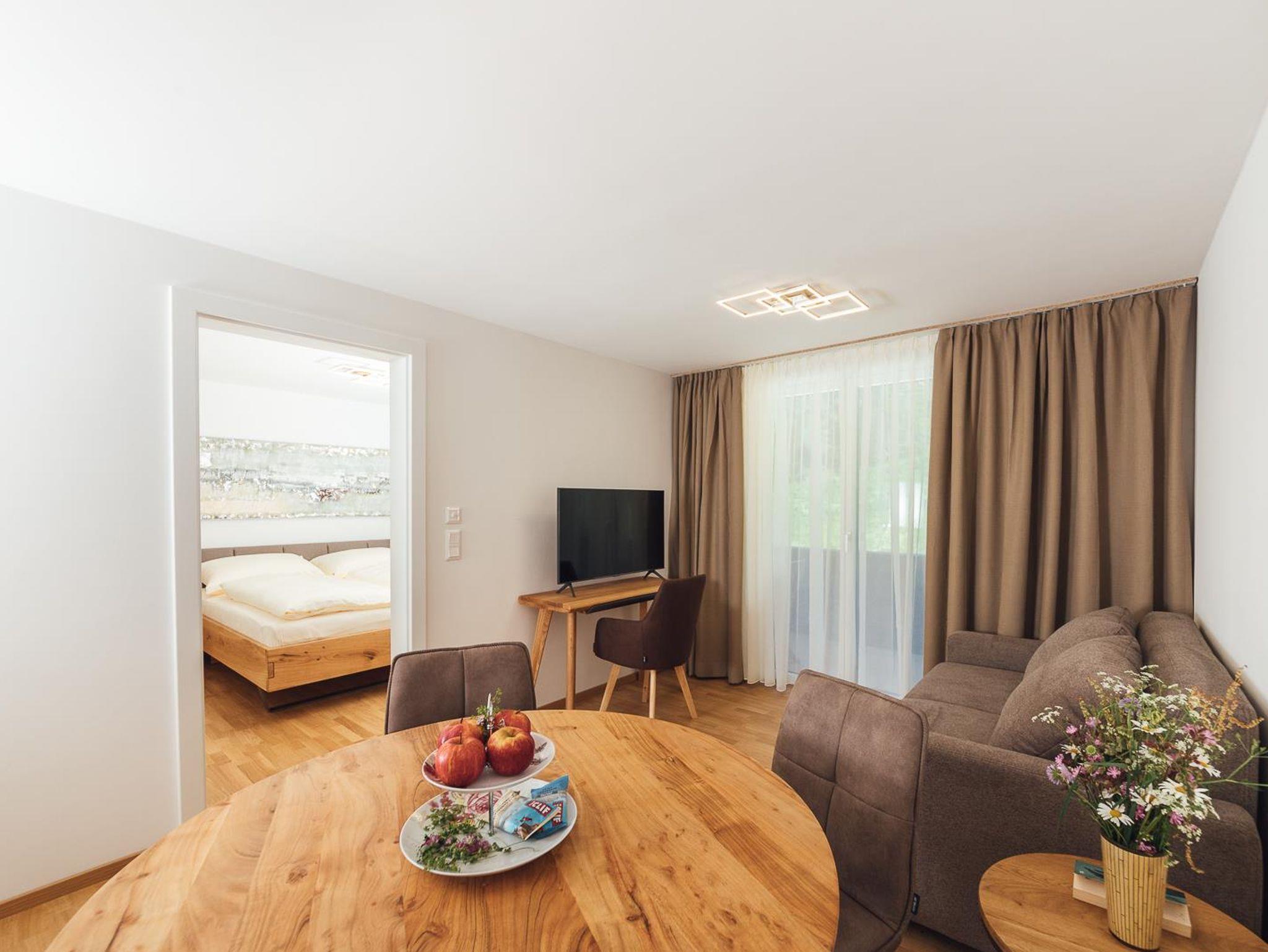 Modern eingerichtetes Appartement für 2 bis 4 Personen, Wohnzimmer mit Schlafcouch, Schlafzimmer, Badezimmer und Küchenzeile