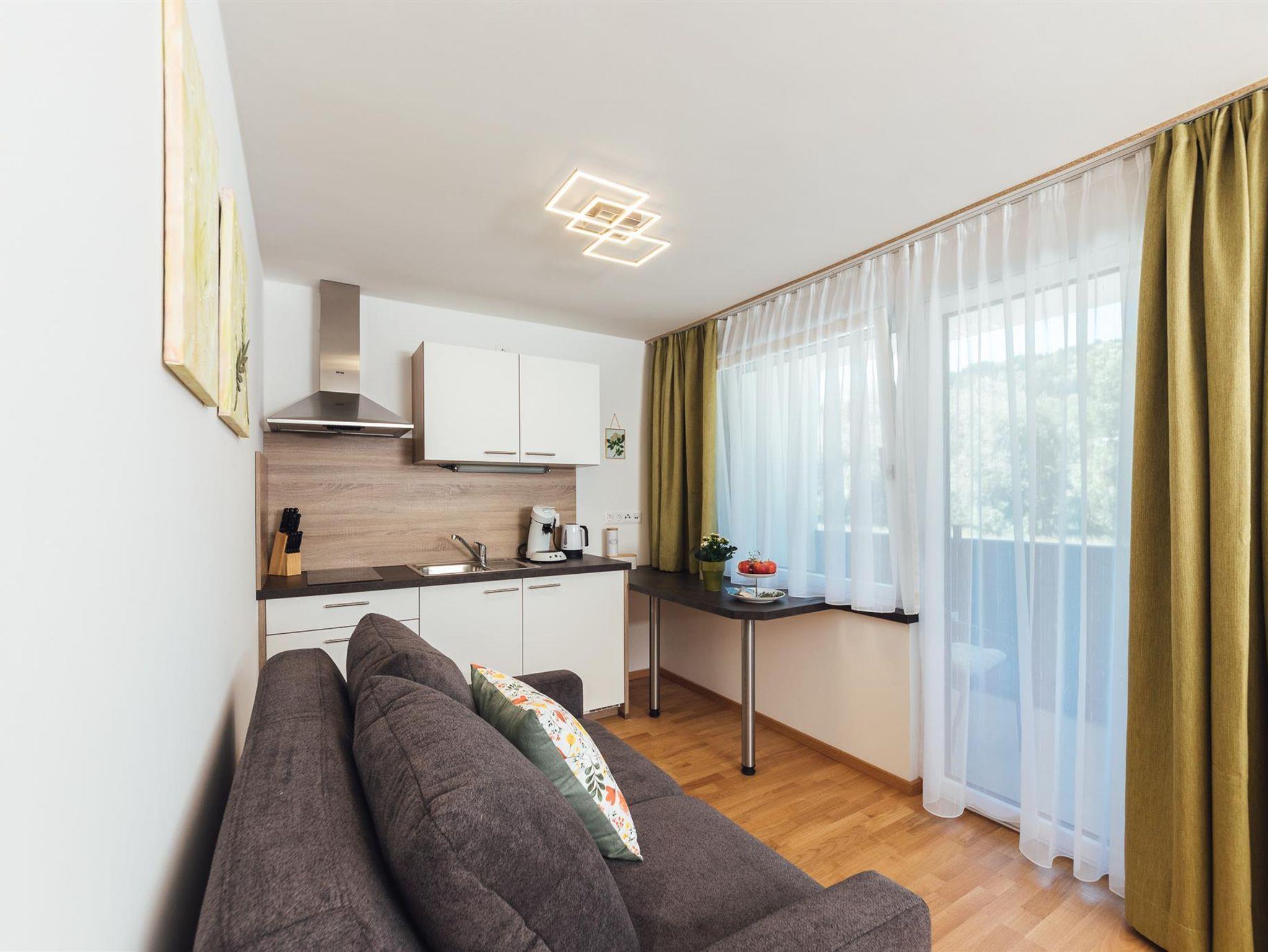 Modern eingerichtetes Appartement für 2 Personen, Wohn-/Schlafzimmer, Badezimmer und Küchenzeile