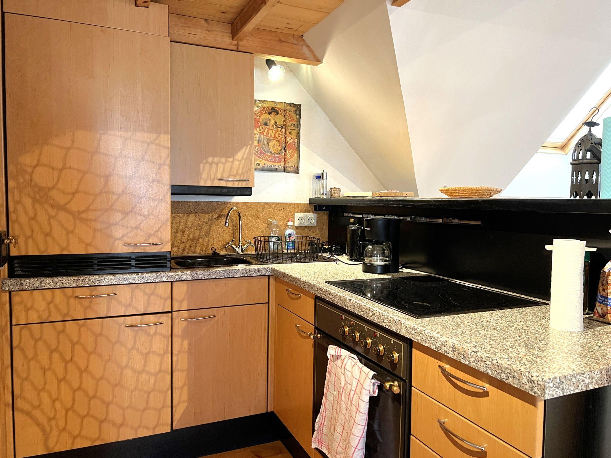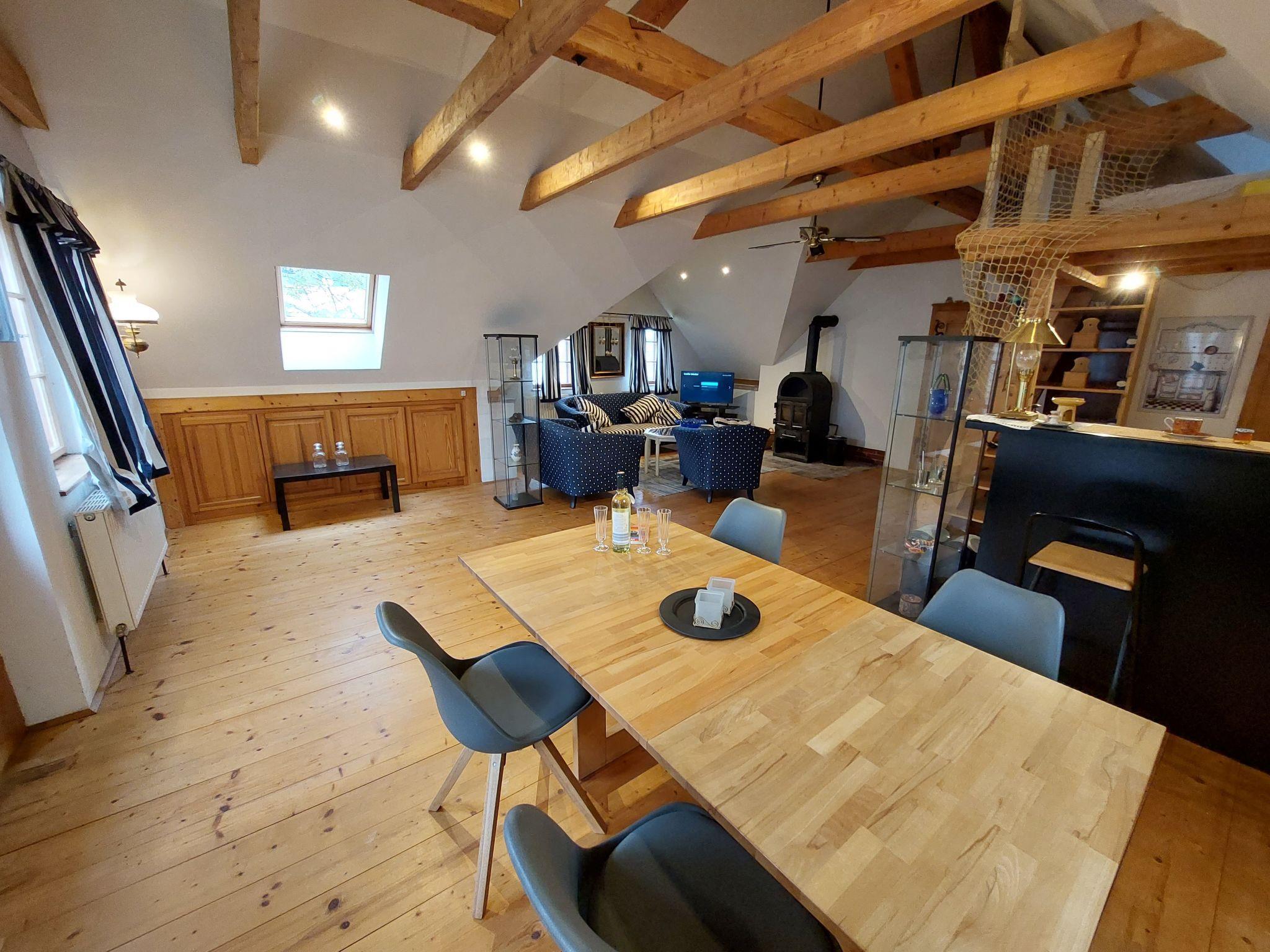 1-room Loft 70 m2, on the upper floor. Object suitable for 2 adults. Rustic and tasteful furnishings: open living/dining room with sloping ceilings with rooflight with 1 x 1 bunk beds (180 cm, length 200 cm). With sloping ceilings, open kitchen (4 hot plates, oven). Bath/WC. Heating. Wooden floors. View of the garden. Please note: non-smokers only. Private entrance.