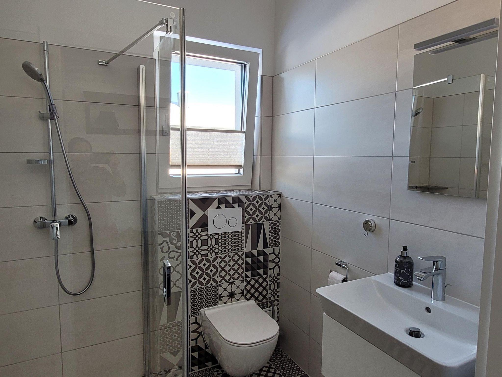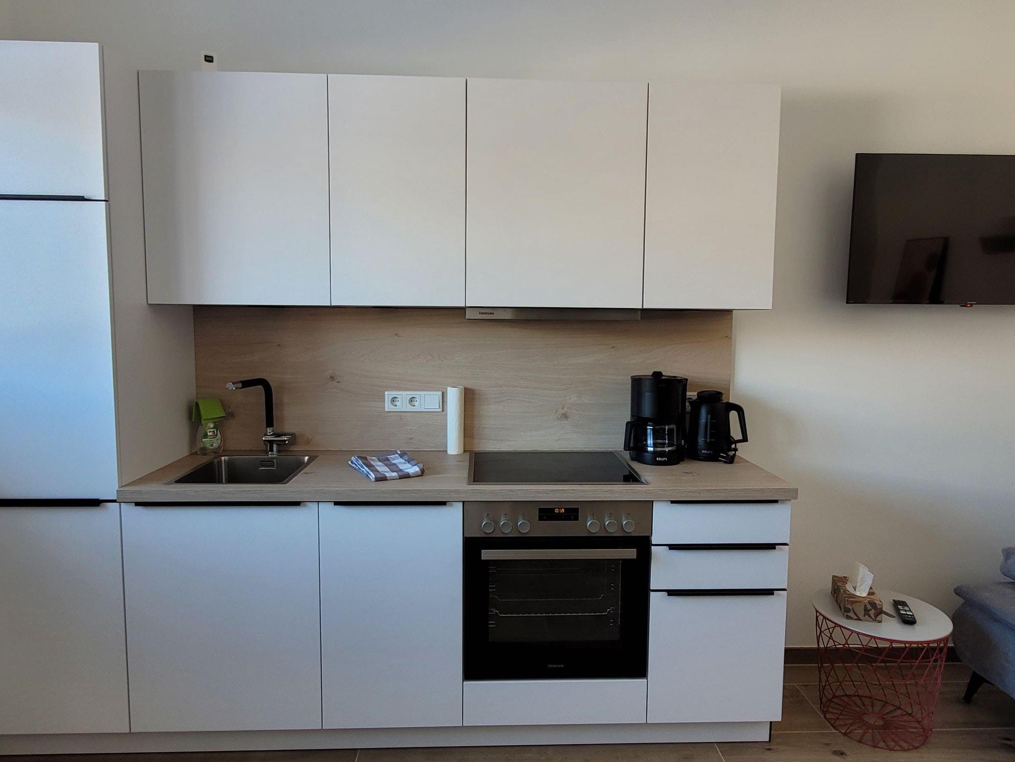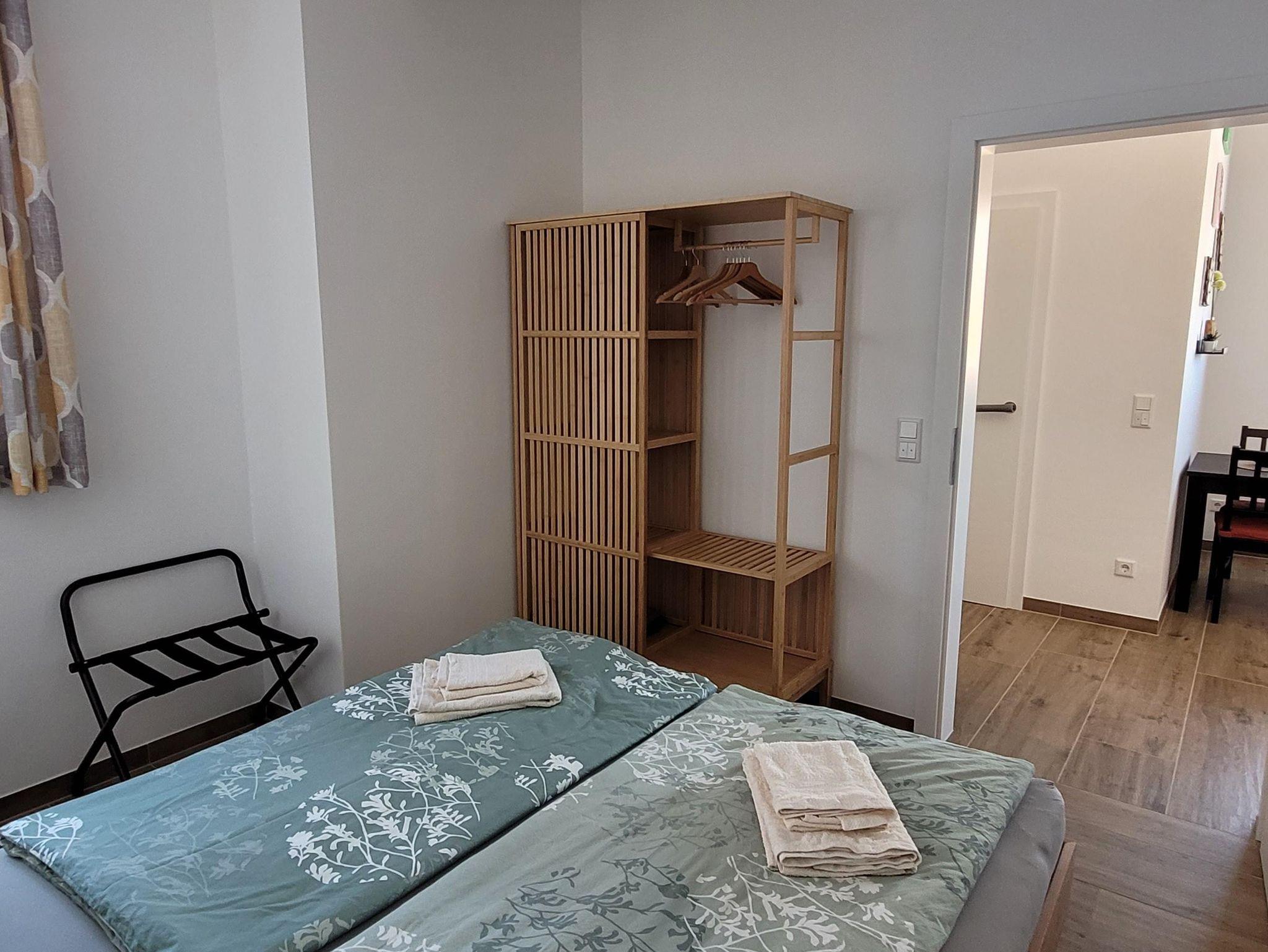 Unser Appartement verfügt über ein Schlafzimmer und einen Wohn-Schlafraum mit einem ausziehbaren Schlafsofa, Fernseher, WLAN, Ess-Sitzgruppe und eine Küchenzeile. Das kleine aber feine Badezimmer ist mit einer Dusche, Waschtisch mit Spiegel und WC ausgestattet