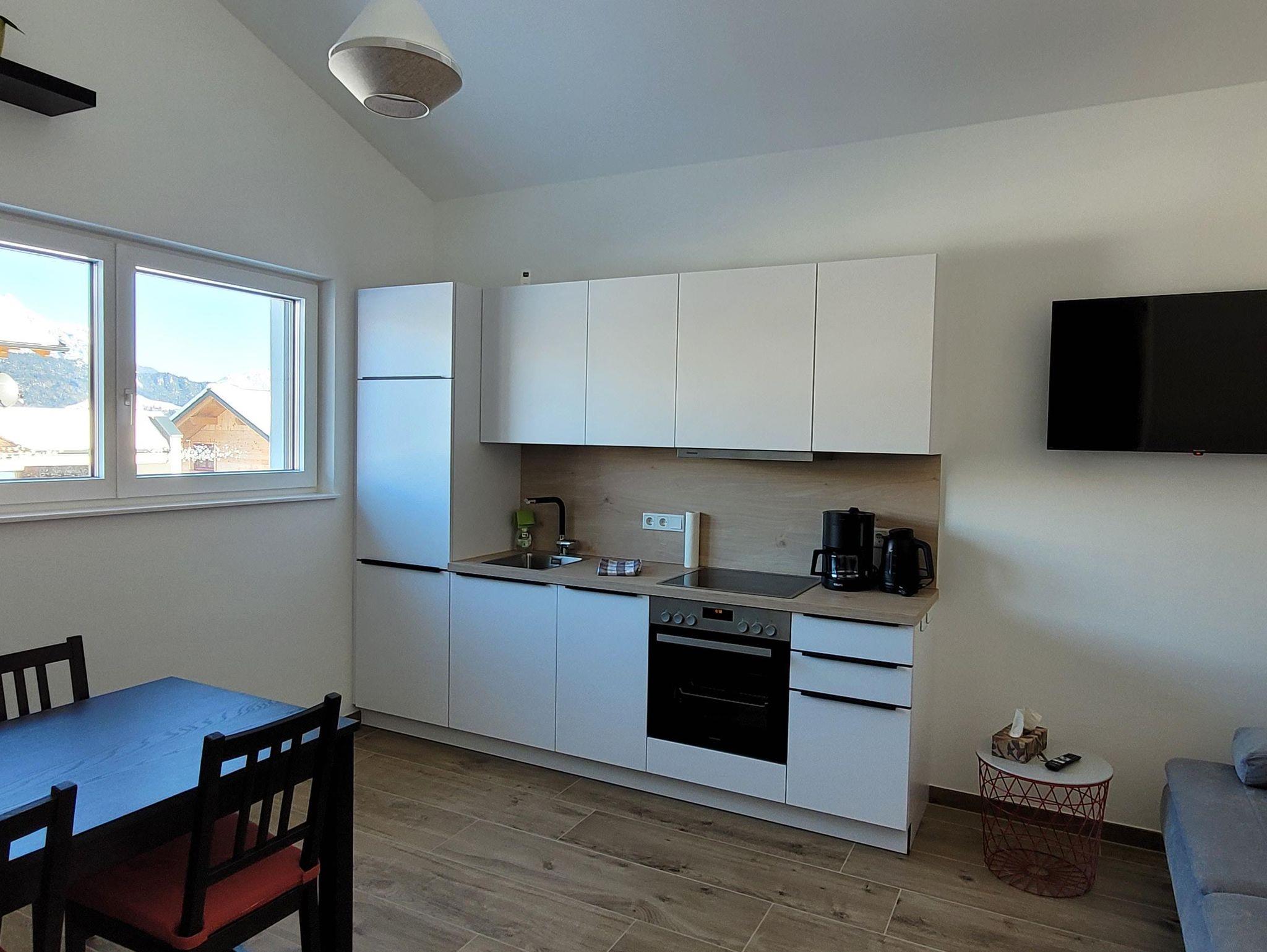 Unser Appartement liegt auf ca 960 hm und steht in einer kleinen Wohnsiedlung umgeben von Wald und Wiesen. Wir bieten ihnen Platz für 2-4 Personen wobei die 3. und 4. Person im Wohn-Schlafbereich auf einem ausziehbaren Schlafsofa nächtigt (eher eng aber gut möglich). Das liebevoll eingerichtete Appartment Petersberg verfügt über ein Schlafzimmer und einen Wohn-Schlafraum mit einem ausziehbaren Schlafsofa, Fernseher, WLAN, Ess-Sitzgruppe und eine Küchenzeile. In der Küche befindet sich ein E- Herd, Kühlschrank mit Gefrierfach, Geschirrspüler Filterkaffeemaschien und ein Wasserkocher. Das kleine aber feine Badezimmer ist mit einer Dusche, Waschtisch mit Spiegel und WC ausgestattet, Handtücher und Bettwäche steht Ihnen ohne Aufpreis zu Verfügung.